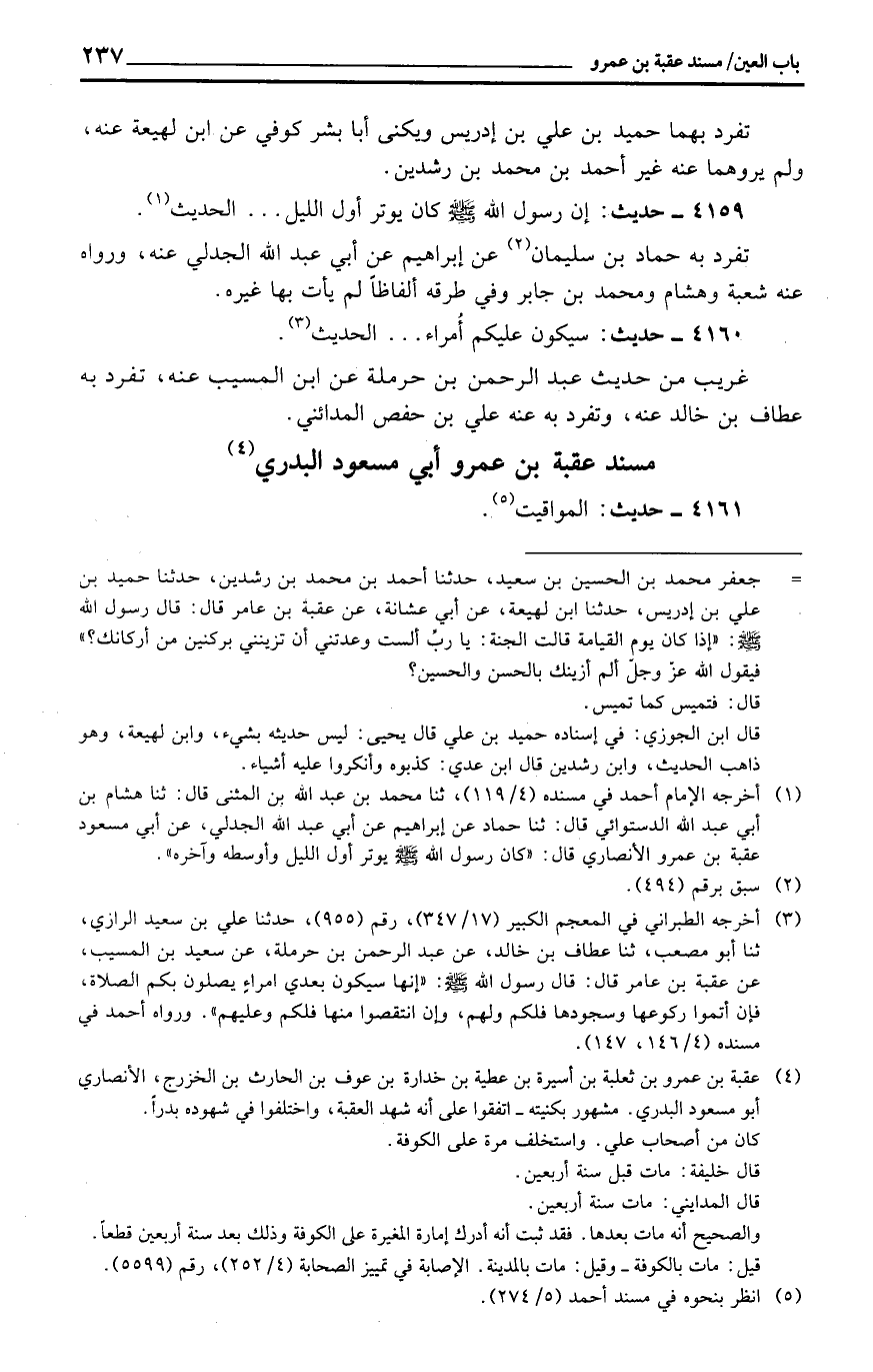 مُسْند عقبَة بن عَمْرو أبي مَسْعُود البدري