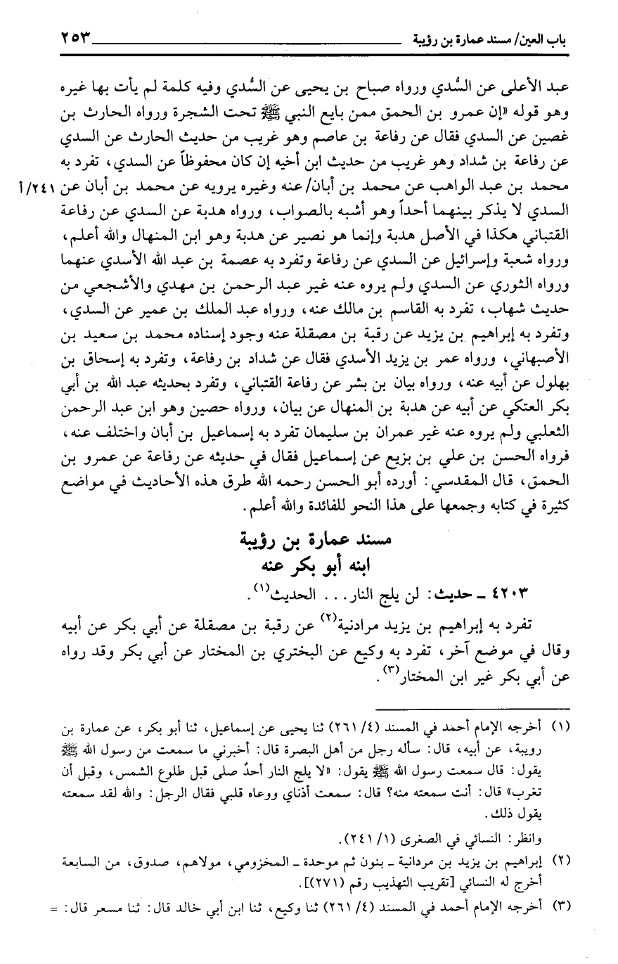 مُسْند عمَارَة بن رؤيبة ابْنه أَبُو بكر عَنهُ