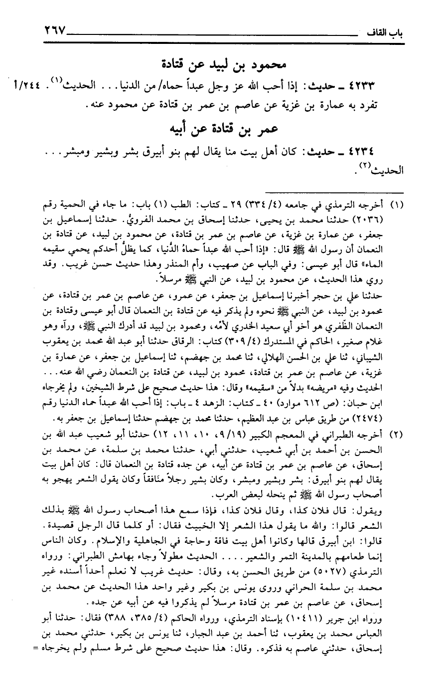 مَحْمُود بن لبيد عَن قَتَادَة