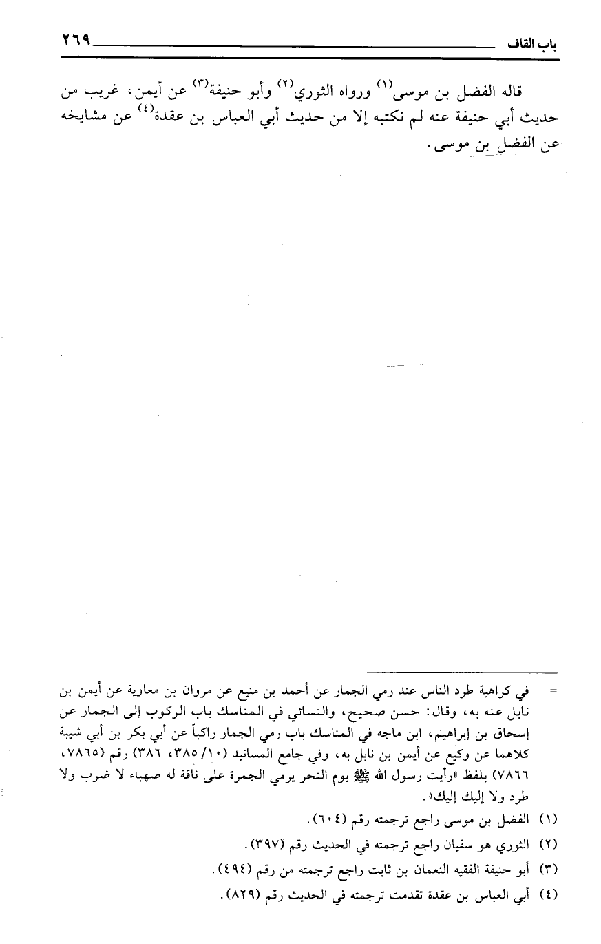 قَالَه الْفضل بن مُوسَى وَرَوَاهُ الثَّوْريّ وَأَبُو حنيفَة عَن أَيمن، غَرِيب من حَدِيث أبي حنيفَة عَنهُ لم نَكْتُبهُ إِلَّا من حَدِيث أبي الْعَبَّاس بن عقدَة عَن مشايخه عَن الْفضل بن مُوسَى.