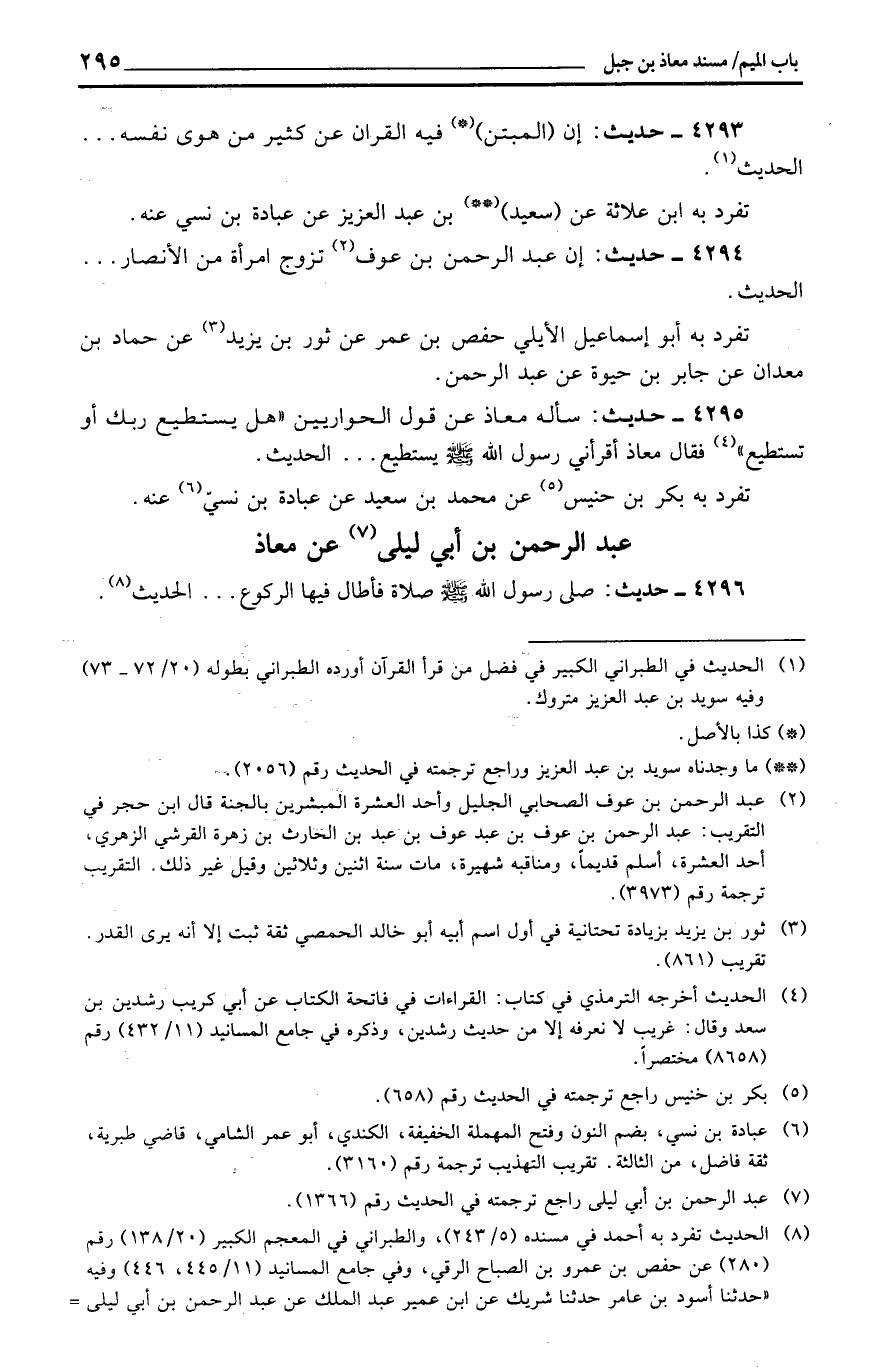 عبد الرَّحْمَن بن أبي ليلى عَن معَاذ