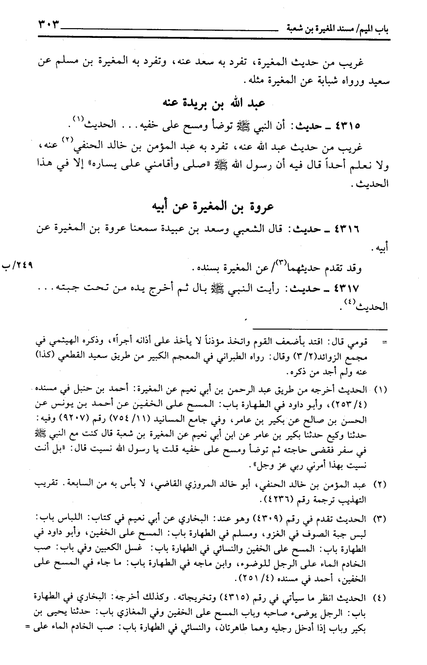 4315 - حَدِيث: أَن النَّبِي تَوَضَّأ وَمسح على خفيه ... الحَدِيث.
