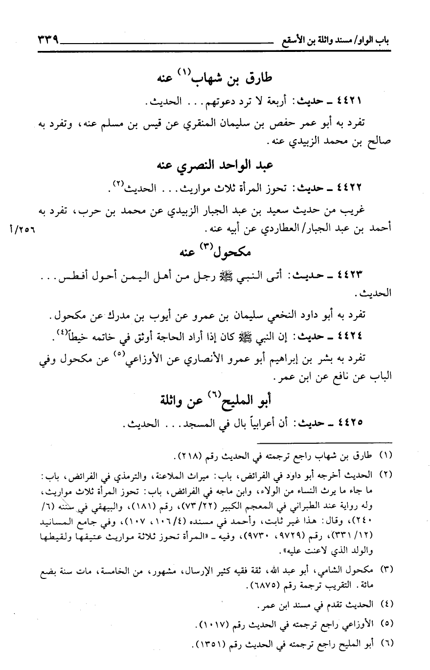 4422 - حَدِيث: تحوز الْمَرْأَة ثَلَاث مَوَارِيث ... الحَدِيث.