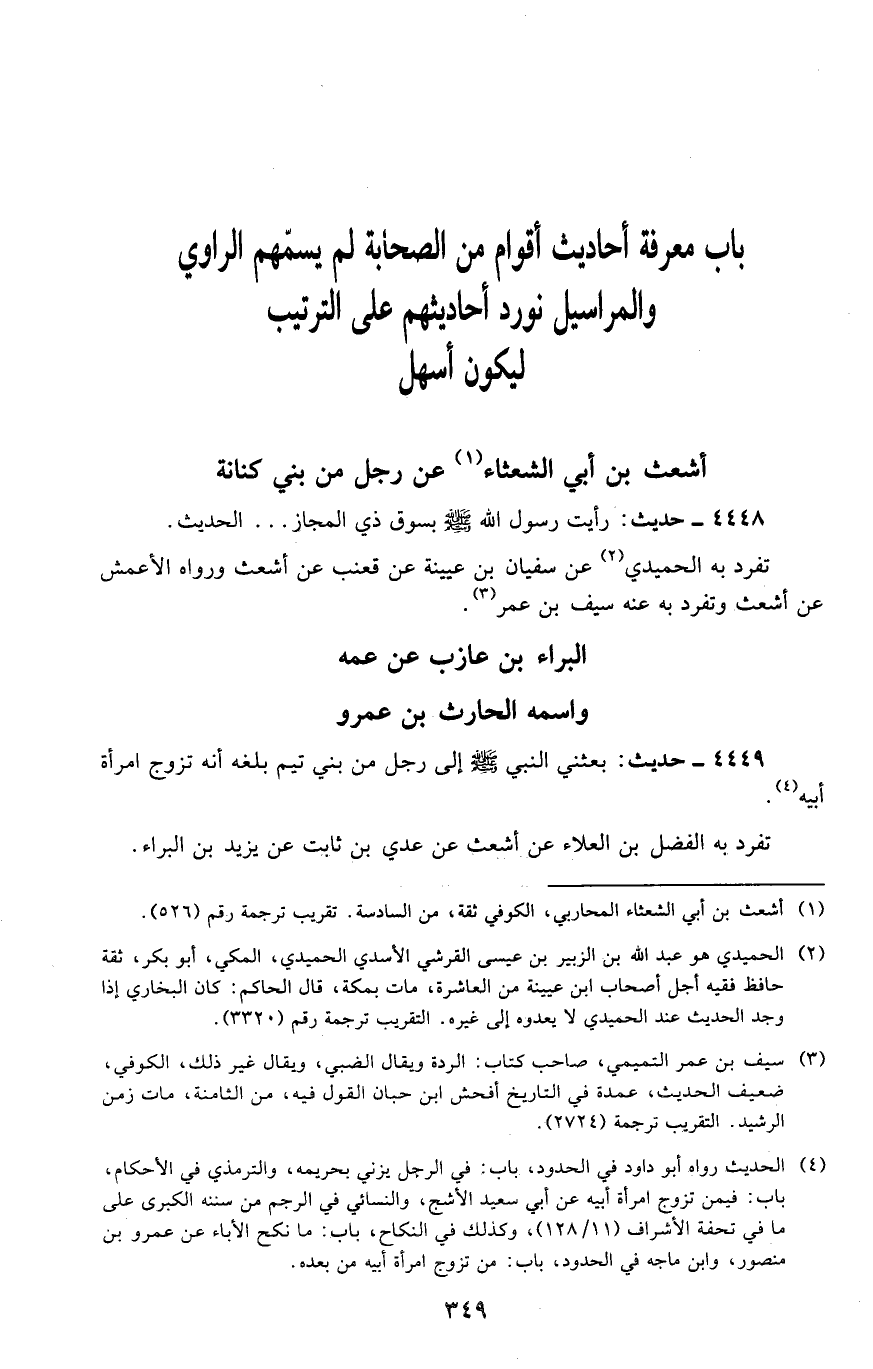 - بَاب معرفَة أَحَادِيث أَقوام من الصَّحَابَة لم يسمهم الرَّاوِي والمراسيل نورد أَحَادِيثهم على التَّرْتِيب ليَكُون أسهل