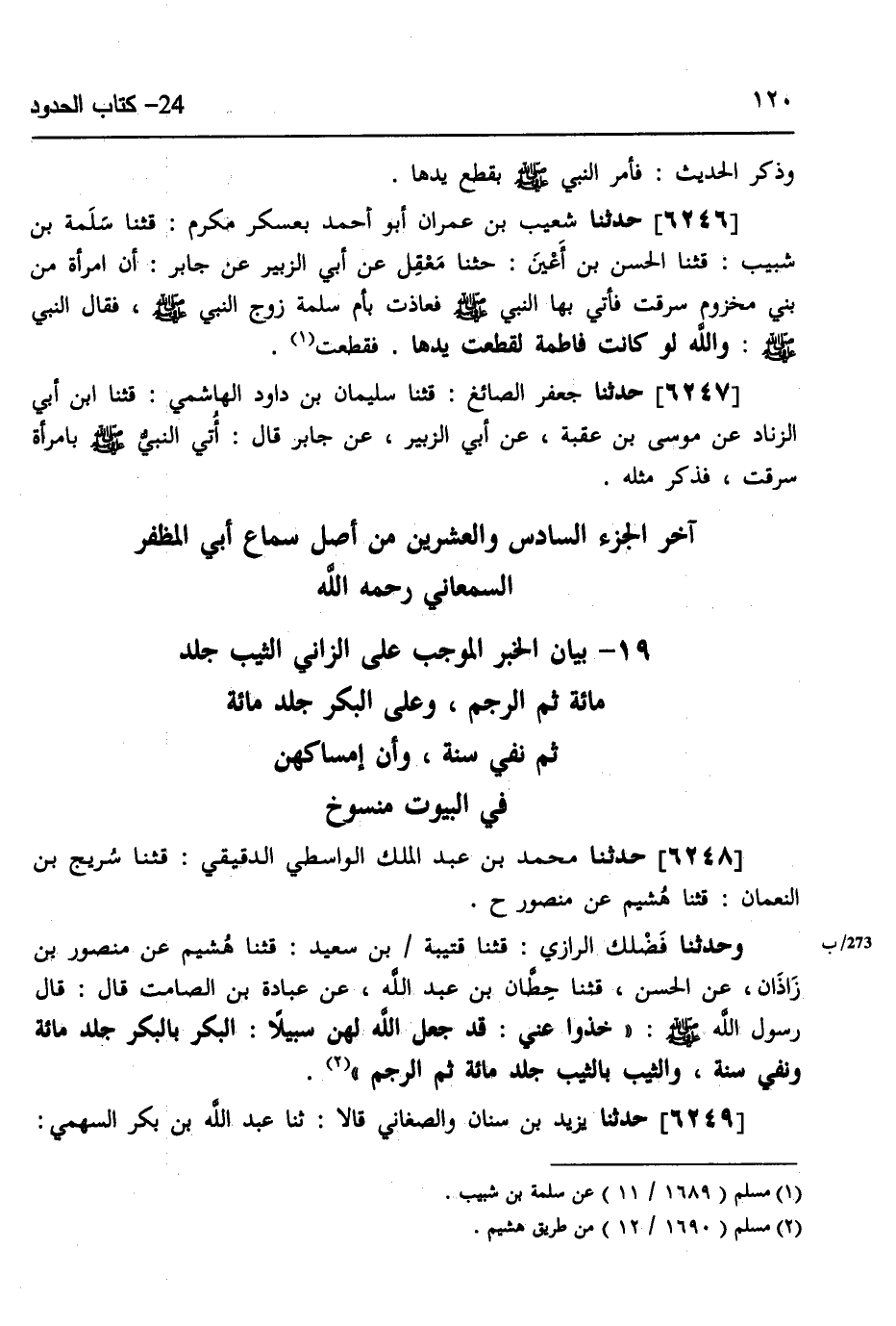 6248 - حَدَّثَنَا مُحَمَّدُ بْنُ عَبْدِ الْمَلِكِ الْوَاسِطِيُّ الدَّقِيقِيُّ، قثنا سُرَيْجُ بْنُ النُّعْمَانِ، قثنا هُشَيْمٌ، عَنْ مَنْصُورٍ، ح وَحَدَّثَنَا فَضْلِكَ الرَّازِيُّ، قثنا قُتَيْبَةُ بْنُ سَعِيدٍ، قثنا هُشَيْمٌ، عَنْ مَنْصُورِ بْنِ زَاذَانَ، عَنِ الْحَسَنِ، قثنا حِطَّانُ بْنُ عَبْدِ اللَّهِ، عَنْ عُبَادَةَ بْنِ الصَّامِتِ، قَالَ: قَالَ رَسُولُ اللَّهِ صَلَّى اللهُ عَلَيْهِ وَسَلَّمَ: «خُذُوا عَنِّي قَدْ §جَعَلَ اللَّهُ لَهُنَّ سَبِيلًا، الْبِكْرُ بِالْبِكْرِ جَلْدُ مِائَةٍ وَنَفْيُ سَنَةٍ، وَالثَّيِّبُ بِالثَّيِّبِ جَلْدُ مِائَةٍ ثُمَّ الرَّجْمُ»