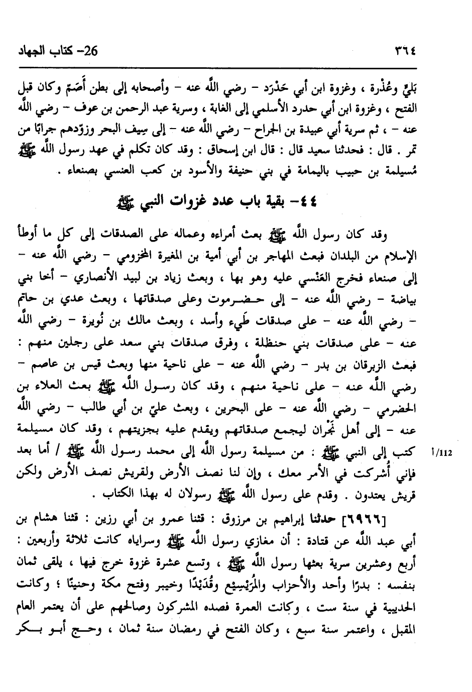 44- بَقِيَّةُ بَابِ عَدَدِ غَزَوَاتِ النَّبِيِّ صَلَّى الله عَلَيهِ وسَلَّم.