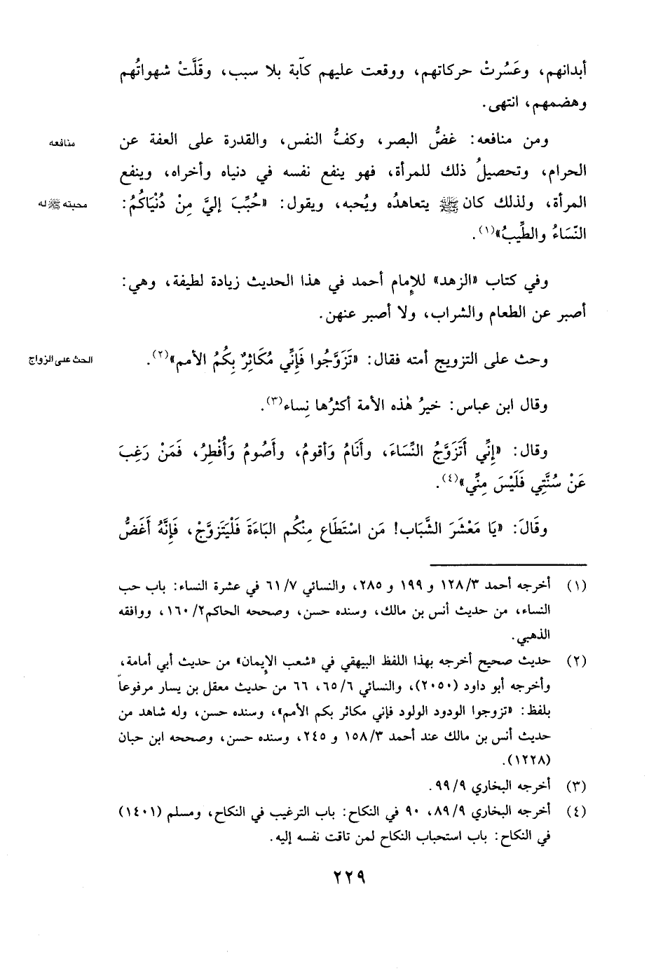 وَحَثَّ عَلَى التَّزْوِيجِ أُمَّتَهُ، فَقَالَ: ( «تَزَوَّجُوا فَإِنِّي مُكَاثِرٌ بِكُمُ الْأُمَمَ» ) .
