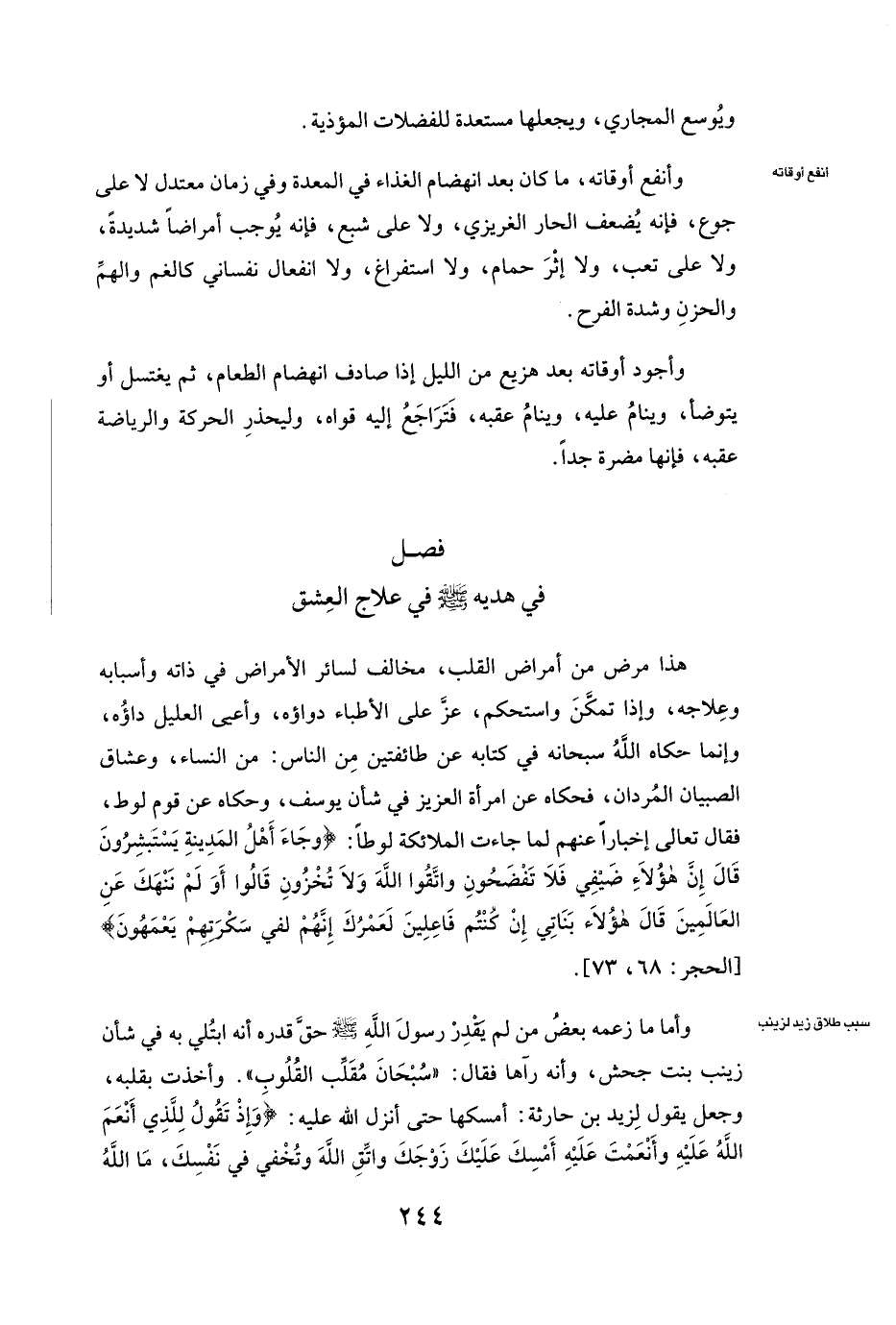 فِي هَدْيِهِ - صَلَّى اللَّهُ عَلَيْهِ وَسَلَّمَ - فِي عِلَاجِ الْعِشْقِ