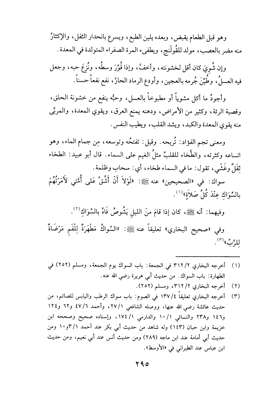 وَفِي " صَحِيحِ الْبُخَارِيِّ " تَعْلِيقًا عَنْهُ صَلَّى اللَّهُ عَلَيْهِ وَسَلَّمَ: ( «السِّوَاكُ مَطْهَرَةٌ لِلْفَمِ مَرْضَاةٌ لِلرَّبِّ» ) .