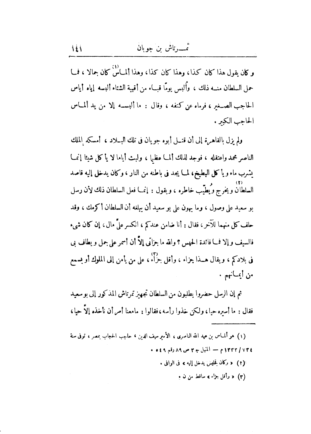 من السلطان تجهيز تمرتاش المذكور إلى بو سعيد فقال: ما أسيره حيا، ولكن خذوا رأسه، فقالوا: ما معنا أمر أن نأخذه إلا حيا،