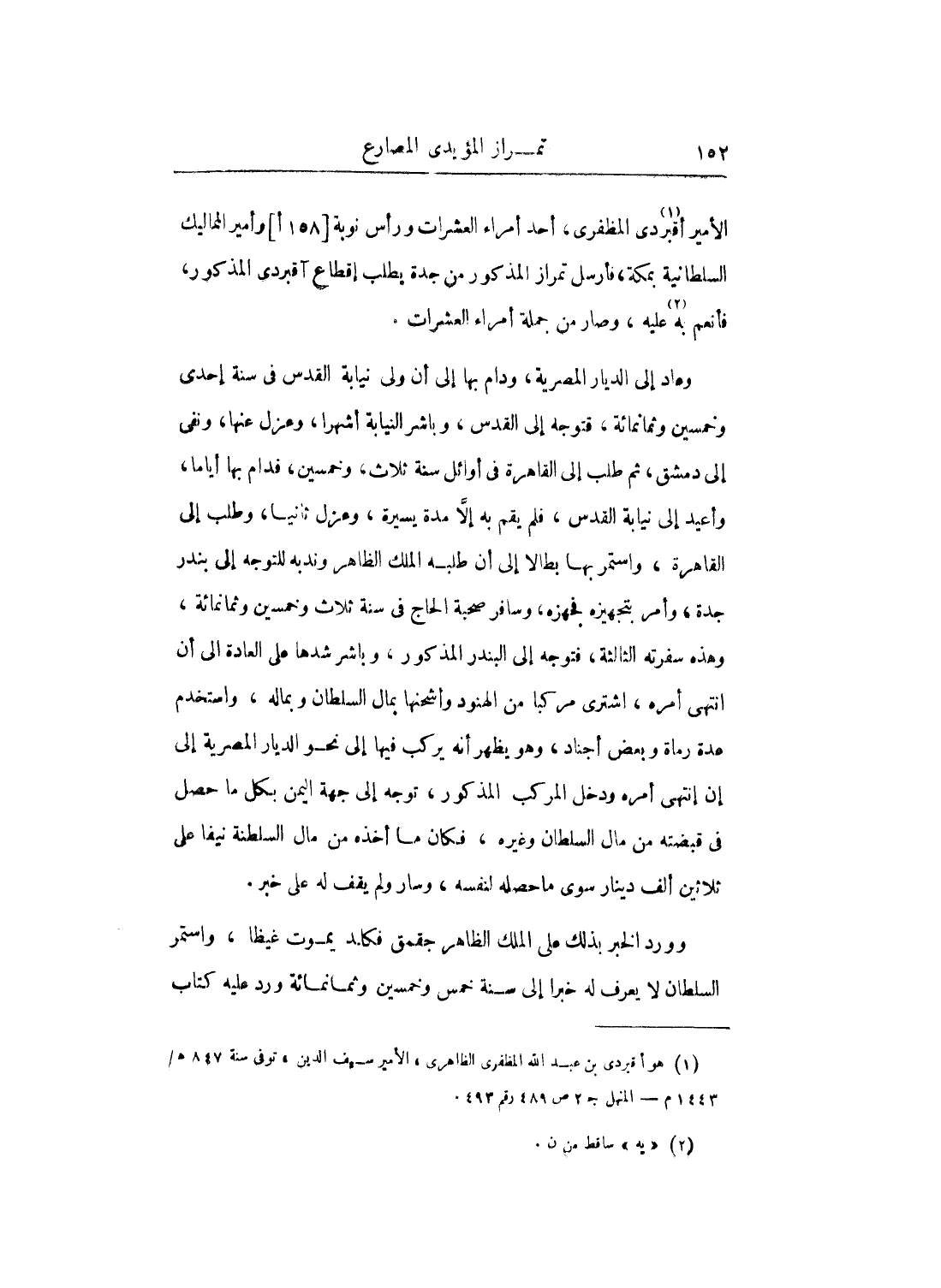الأمير أقبردي المظفري، أحد أمراء العشرات ورأس نوبة وأمير المماليك السلطانية بمكة، فأرسل تمراز المذكور من جدة يطلب إقطاع آقبردى المذكور، فأنعم به عليه، وصار من جملة أمراء العشرات.