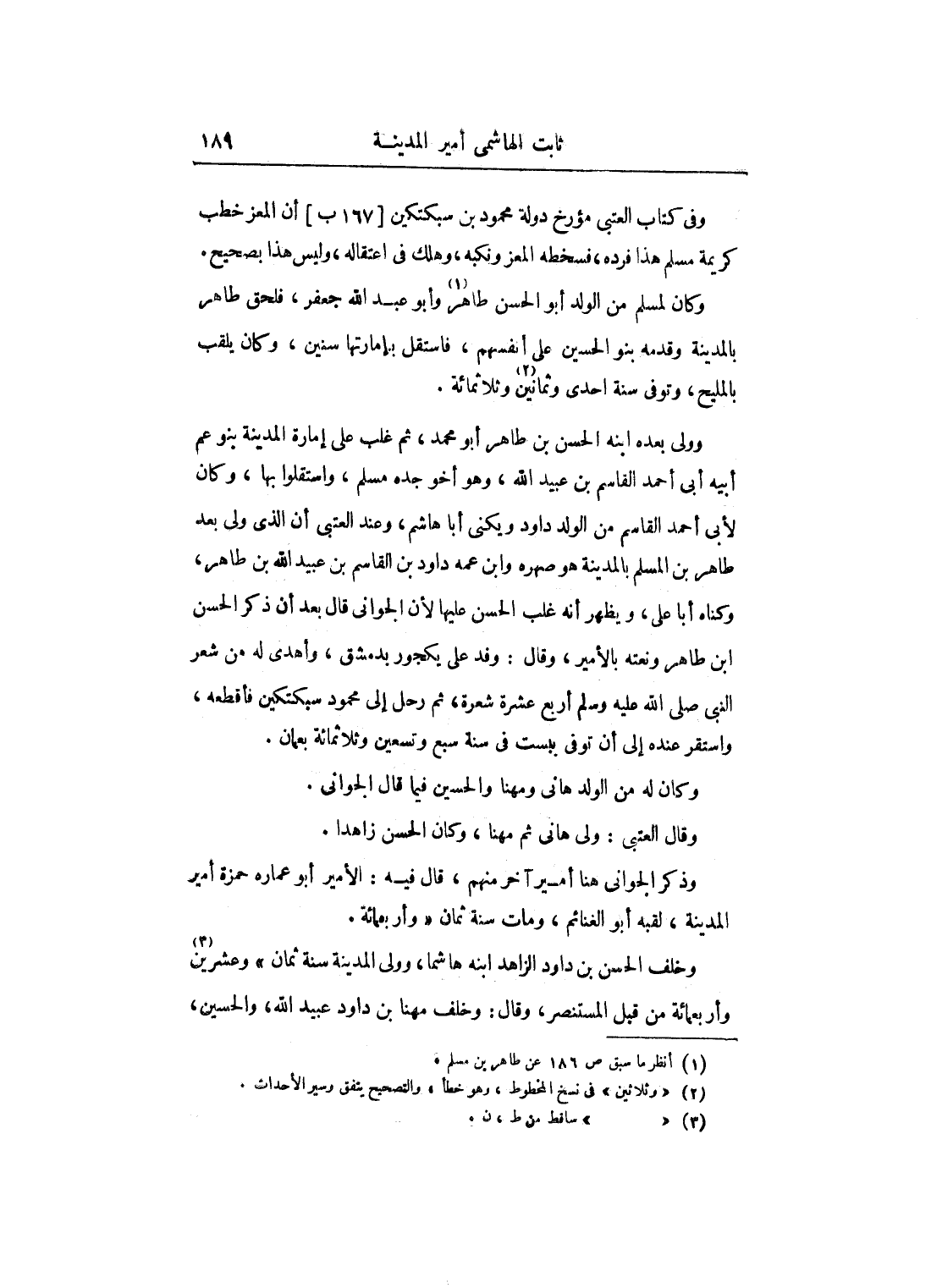 وذكر الجواني هنا أمير آخر منهم، قال فيه: الأمير أبو عمارة حمزة أمير المدينة، لقبه أبو الغنائم، ومات سنة ثمان وأربعمائة.