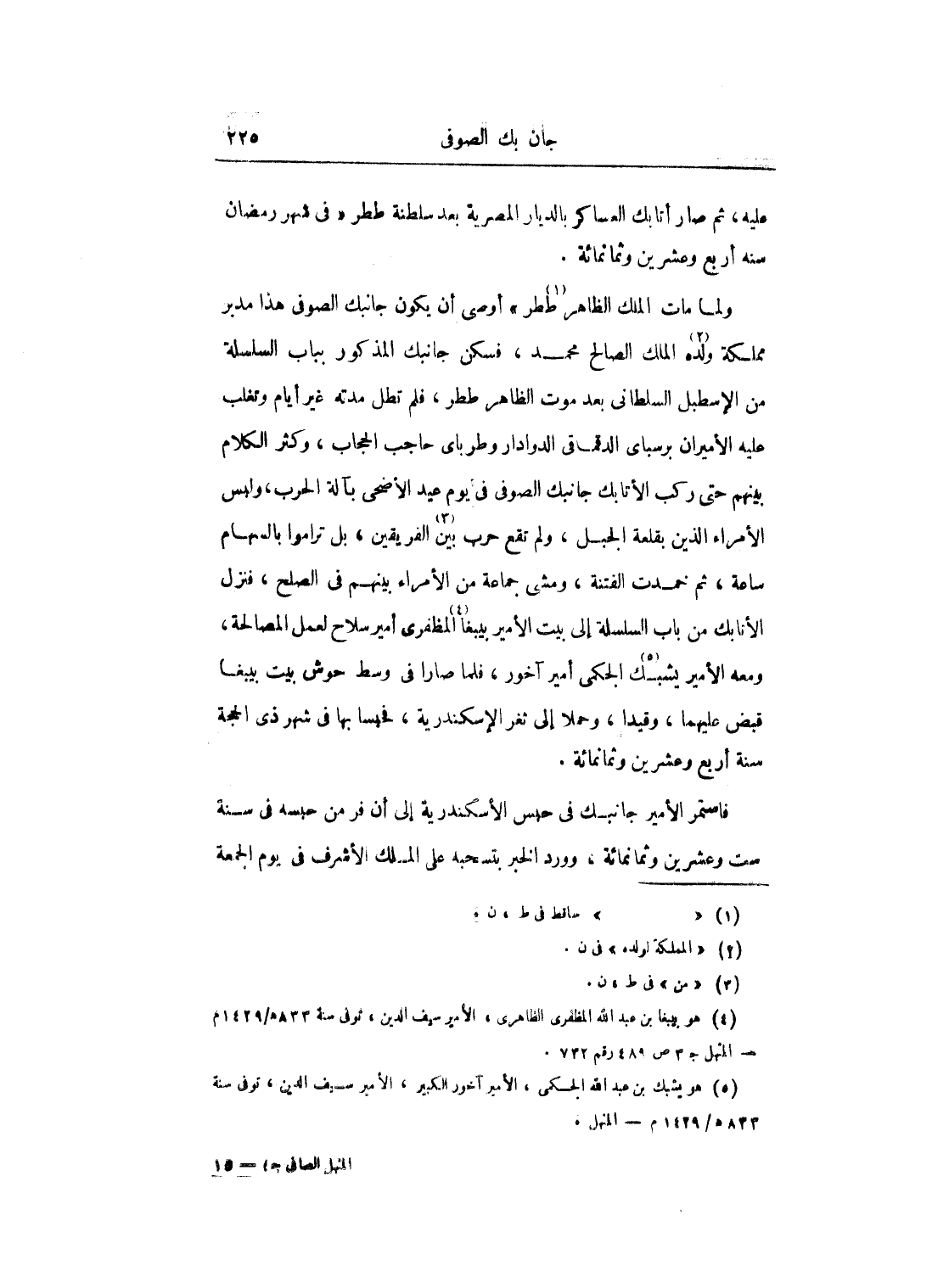 فاستمر الأمير جانبك في حبس الأسكندرية إلى أن فر من حبسه في سنة ست وعشرين وثمانمائة، ووورد الخبر بتسحبه على الملك الأشرف في يوم الجمعة