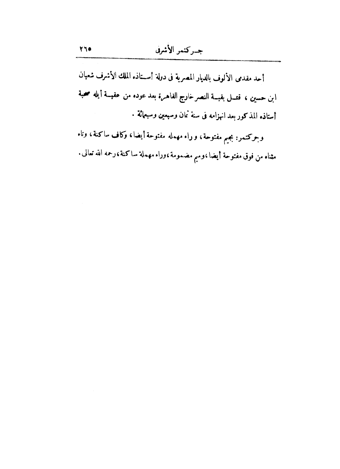 وجركتمر: بجيم مفتوحة، وراء مهمله مفتوحة أيضاً، وكاف ساكنة، وتاء مثناه من فوق مفتوحة أيضاً، وميم مضمومة، وراء مهملة ساكنة، رحمه الله تعالى.