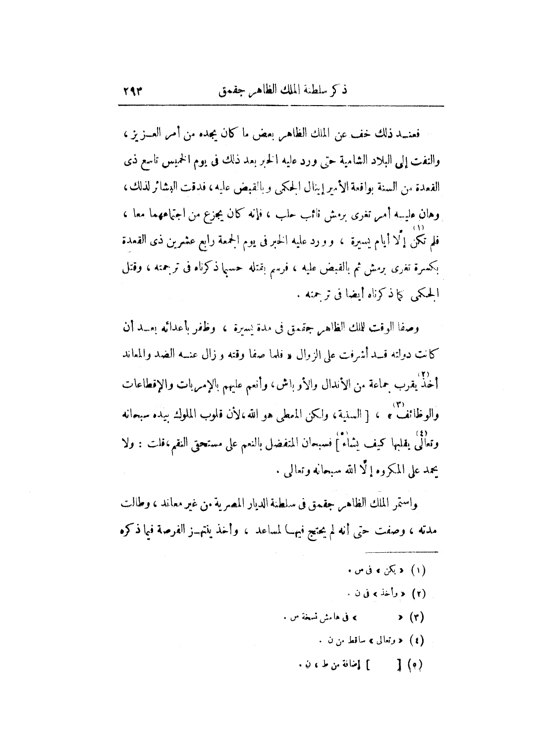 وصفا الوقت للملك الظاهر جقمق في مدة يسيرة، وظفر بأعدائه بعد أن كانت دولته قد أشرفت على الزوال فلما صفا وقته وزال عنه الضد والمعاند أخذ يقرب جماعة من الأندال والأوباش، وأنعم عليهم بالإمريات والإقطاعات والوظائف، السنية، ولكن المعطى هو الله، لأن قلوب الملوك بيده سبحانه وتعالى يقلبها كيف يشاء فسبحان المتفضل بالنعم على مستحقي النقم، قلت: ولا يحمد على المكروه إلا الله سبحانه وتعالى.