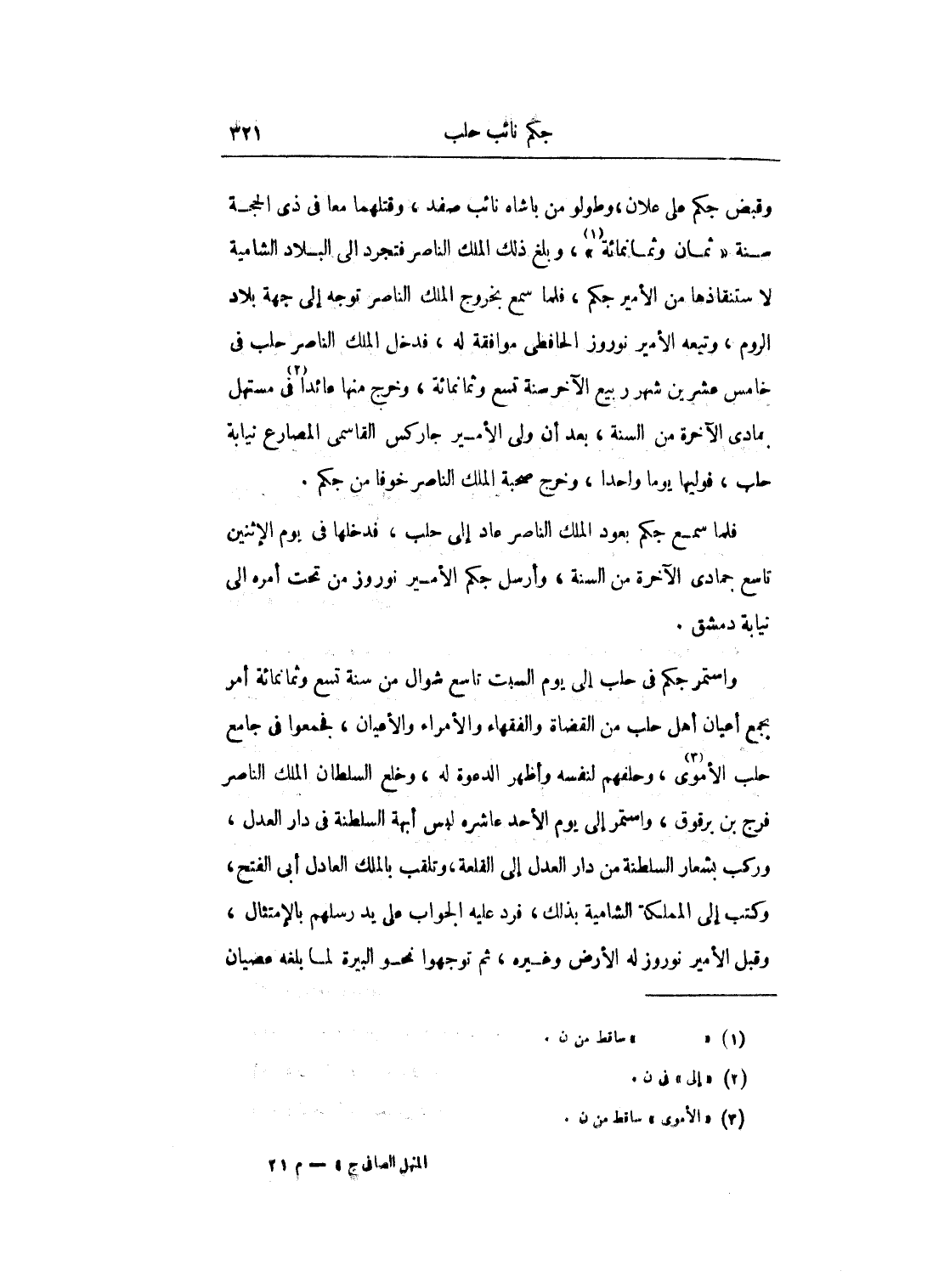 فلما سمع جكم بعود الملك الناصر عاد إلى حلب، فدخلها في يوم الإثنين تاسع جمادى الآخرة من السنة، وأرسل جكم الأمير نوروز من تحت أمره إلى نيابة دمشق.