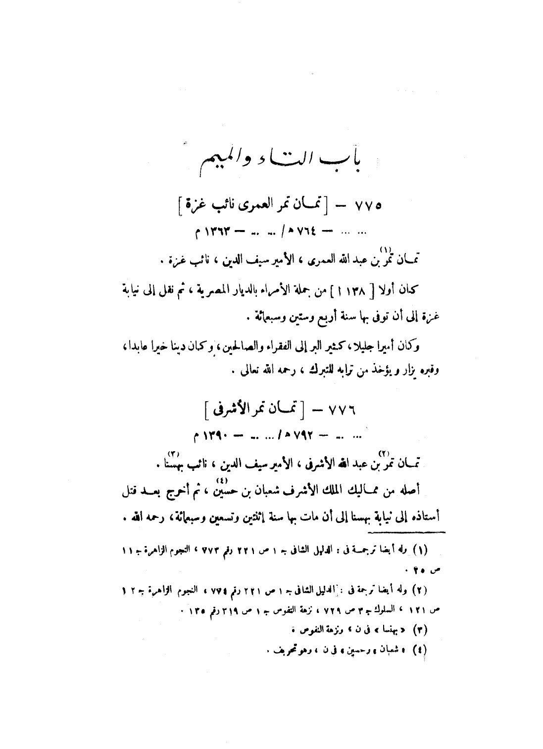 أصله من مماليك الملك الأشرف شعبان بن حسين، ثم أخرج بعد قتل أستاذه إلى نيابة بهسنا إلى أن مات بها سنة إثنتين وتسعين وسبعمائة، رحمه الله.