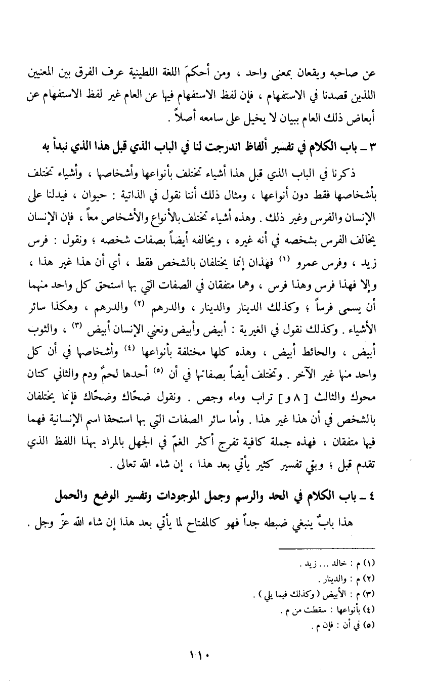 4 - باب الكلام في الحد والرسم وجمل الموجودات وتفسير الوضع والحمل