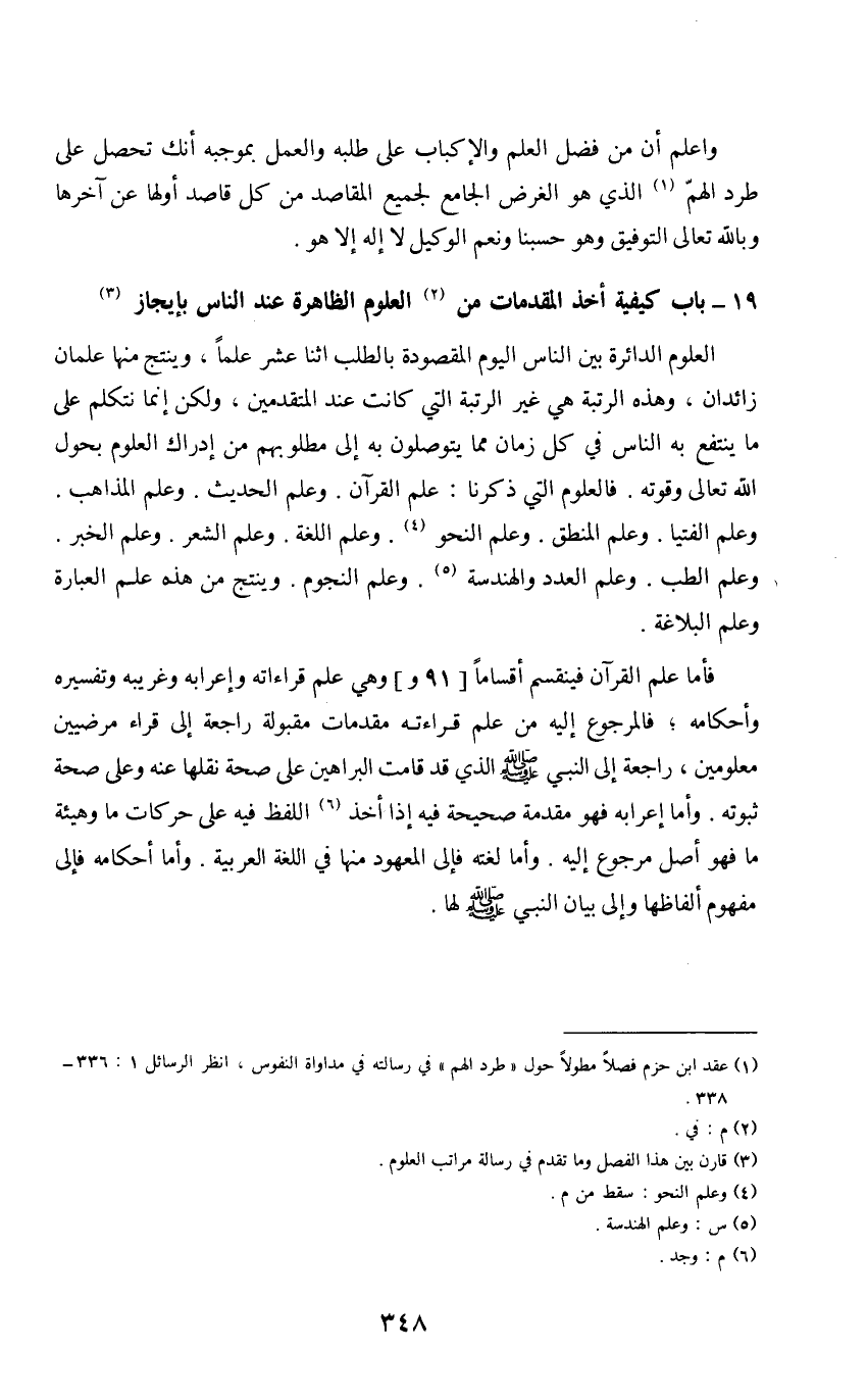 19 - باب كيفية أخذ المقدمات من (2) العلوم الظاهرة عند الناس بإيجاز (3)