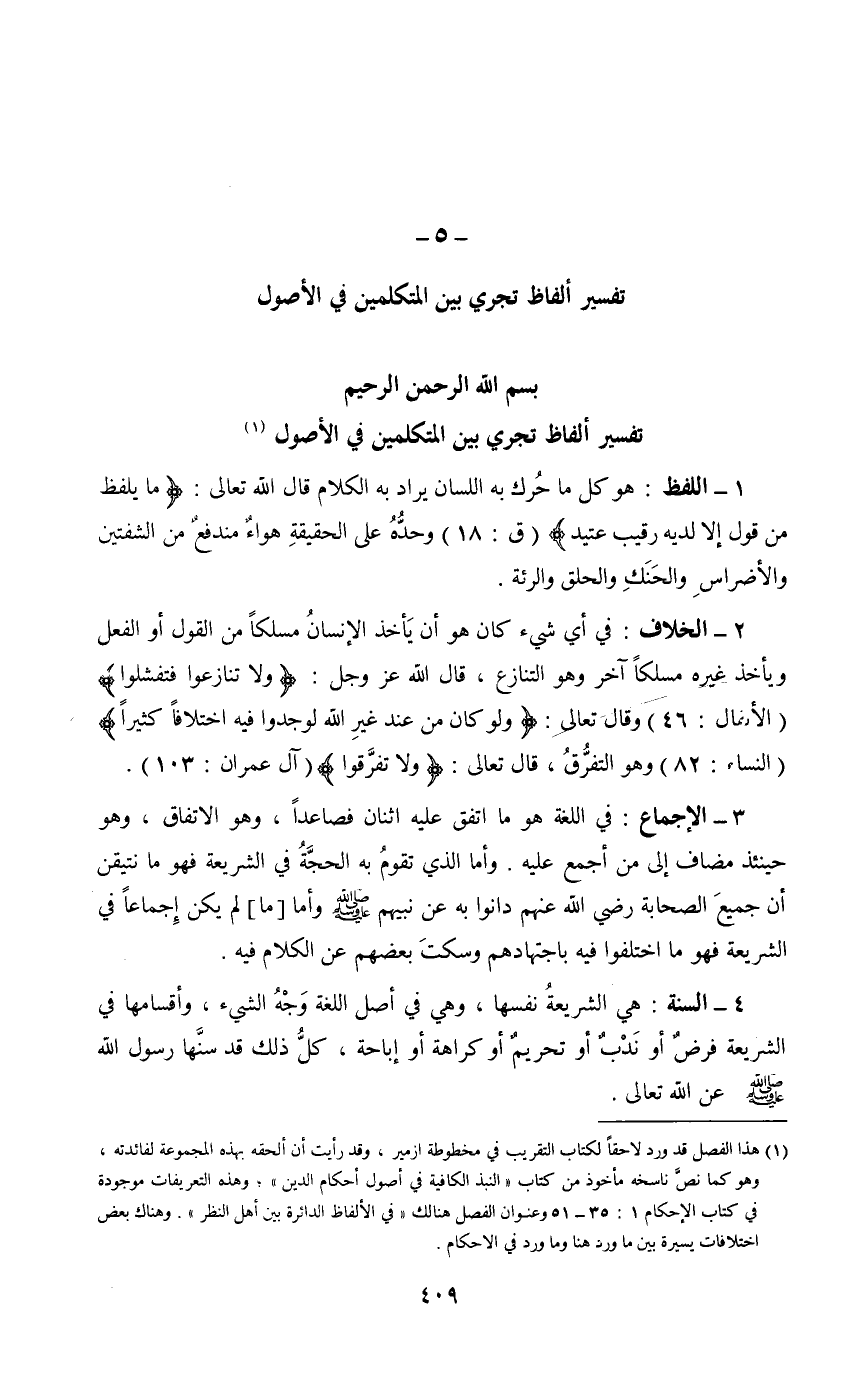 تفسير ألفاظ تجري بين المتكلمين في الأصول (1)