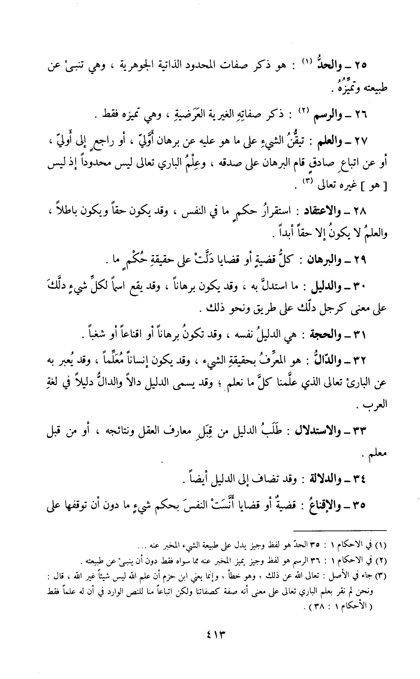 (1) في الأحكام 1: 35 الحد هو لفظ وجيز يدل على طبيعة الشيء المخبر عنه ...
