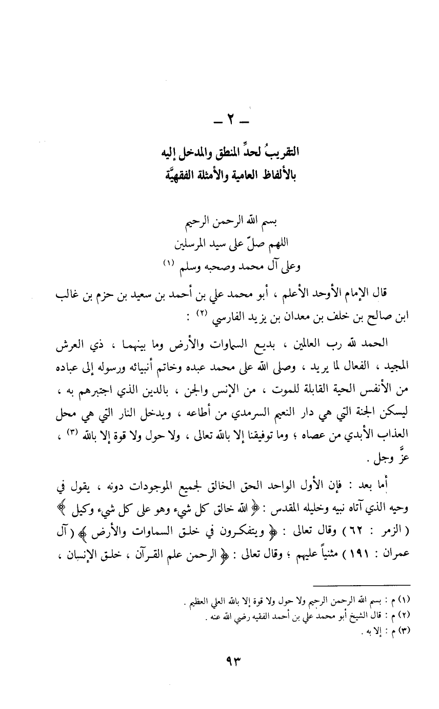 (2) م: قال الشيخ أبو محمد عليّ بن أحمد الفقيه رضي الله عنه.