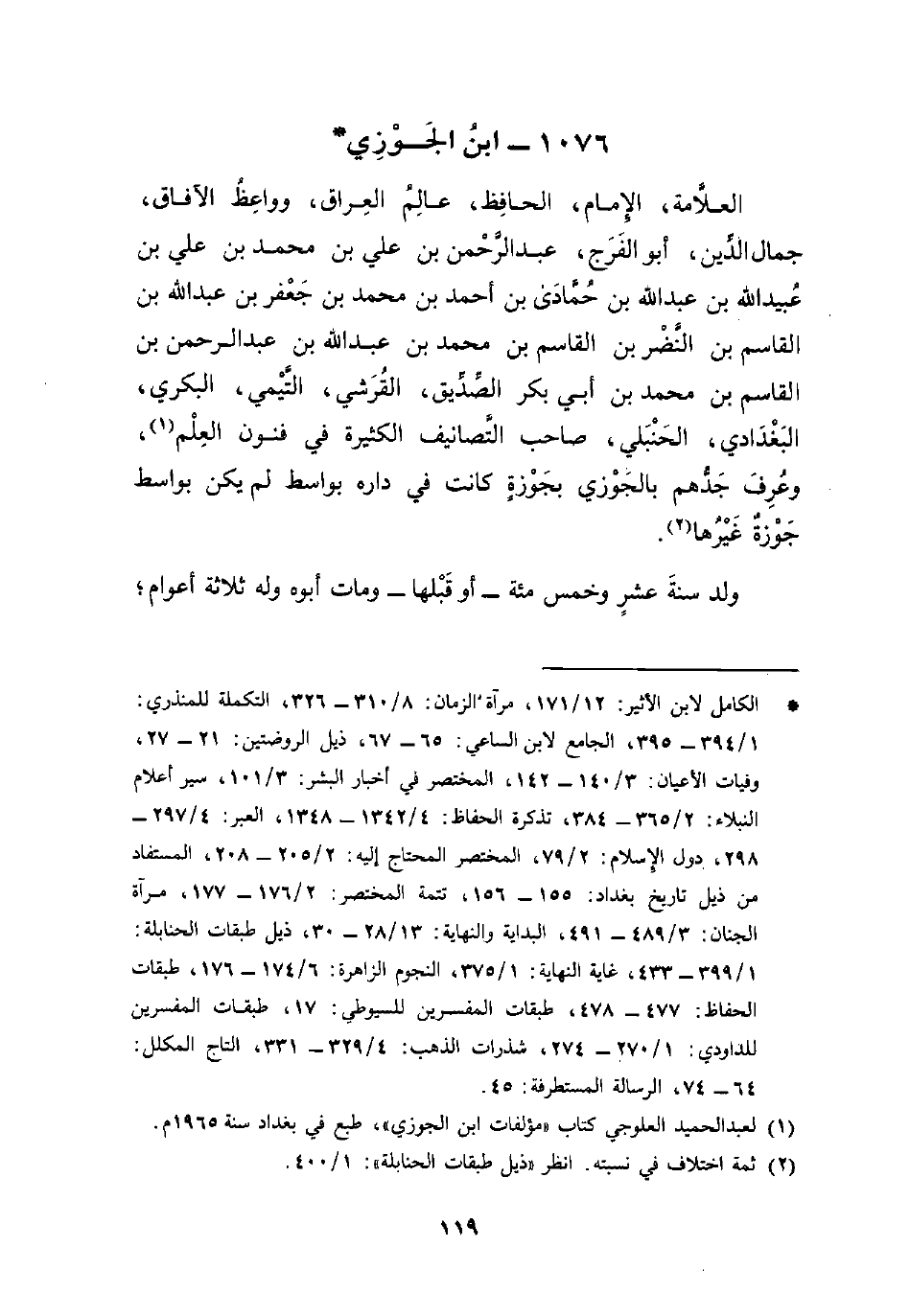 (¬1) لعبد الحميد العلوجي كتاب "مؤلفات ابن الجرزي"، طبع في بغداد سنة 1965 م.