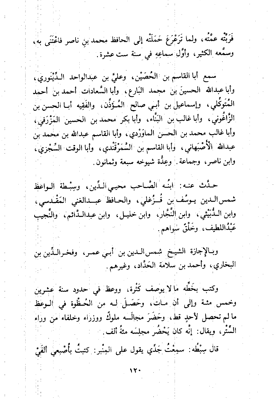 وكتب بخَطِّه ما لا يوصف كَثْرة، ووعظ في حدود سنة عشرين وخمس مئة وإلى أن مات، وحَصَلَ له من الحُظْوة في الوعظ ما لم تحصل لأحدٍ قط، وحَضَرَ مجالسه ملوكٌ ووزراء وخلفاء من وراء السِّتْر، ويقال: إنَّه كان يَحْضُر مجلِسَه مئةُ ألف.