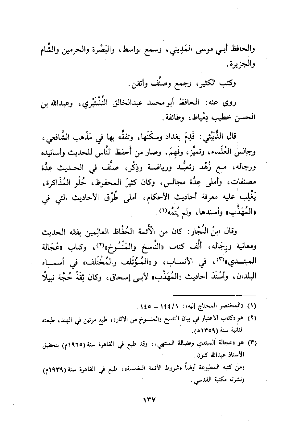 (¬2) هو "كتاب الاعتبار في بيان الناسخ والمنسوخ من الآثار"، طبع مرتين في الهند، طبعته الثانية سنة (1359 هـ).