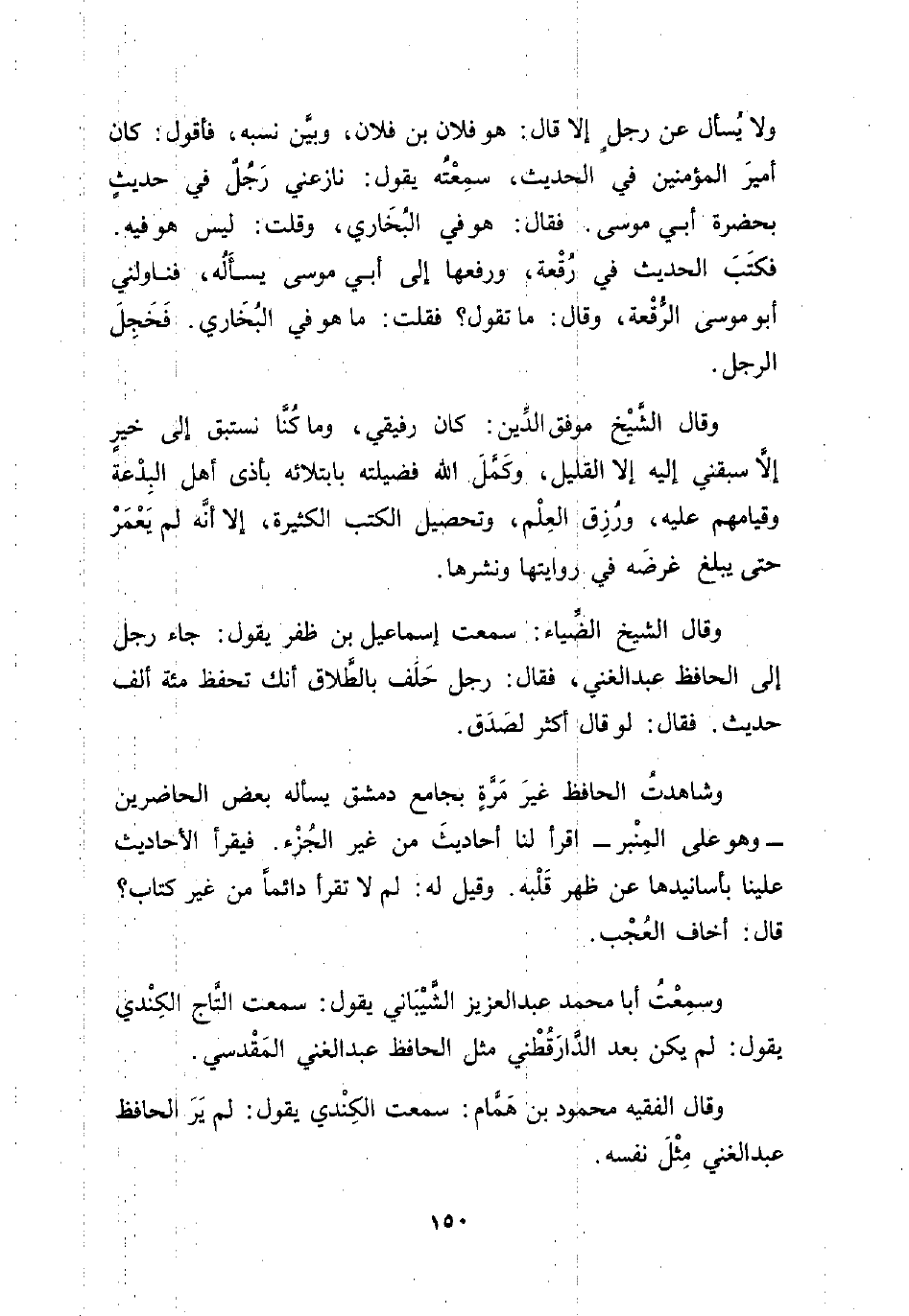 وسمعْتُ أبا محمد عبد العزيز الشَّيباني يقول: سمعت التَّاج الكِنْدي بقول: لم يكن بعد الدَّارَقُطْني مثل الحافظ عبد الغني المَقْدسي.