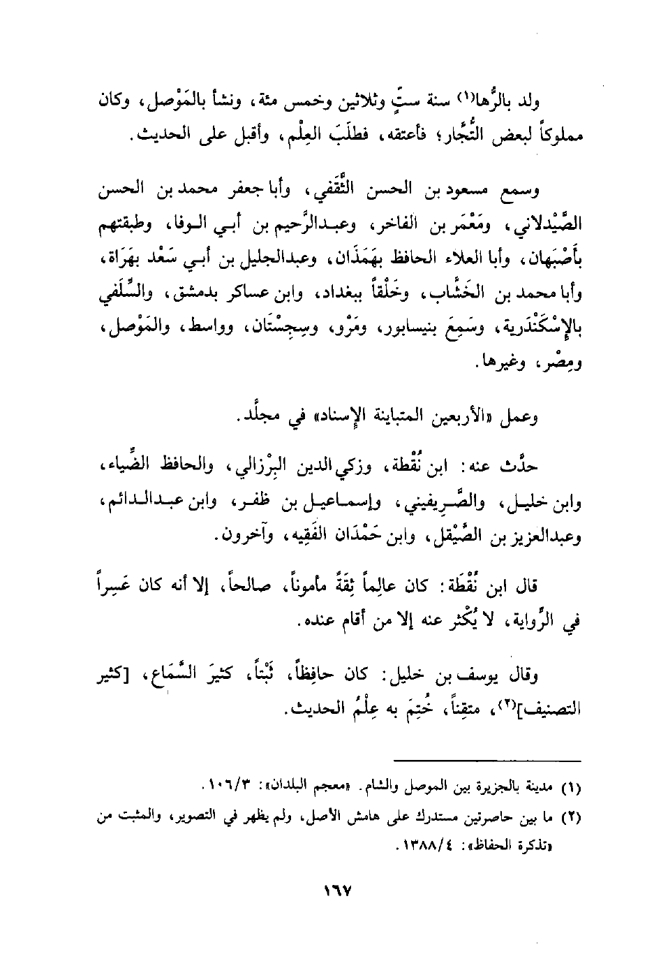 ولد بالرُّها (¬1) سنة ستٍّ وثلاثين وخمس مئة، ونشأ بالمَوْصل، وكان مملوكًا لبعض النُّجَّار؛ فأعتقه، فطلَبَ العِلْم، وأقبل على الحديث.