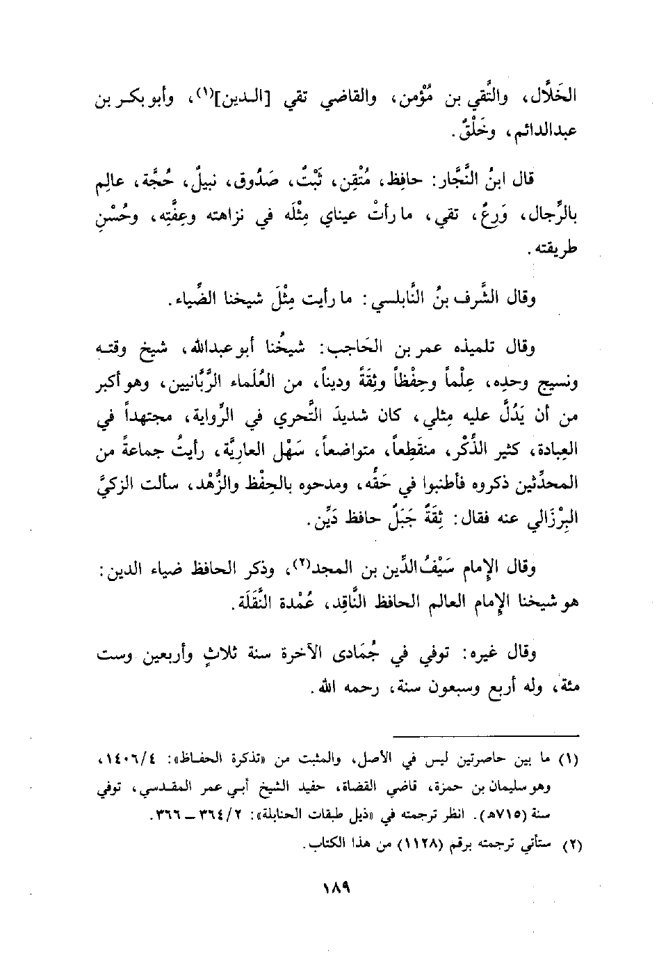 (¬1) ما بين حاصرتين ليس في الأصل، والمثبت من "تذكرة الحفاظ": 4/ 1406، وهو سليمان بن حمزة، قاضي القضاة، حفيد الشيخ أبي عمر المقدسي، توفي سنة (715 هـ). انظر ترجمته في "ذيل طبقات الحنابلة": 2/ 364 - 366.