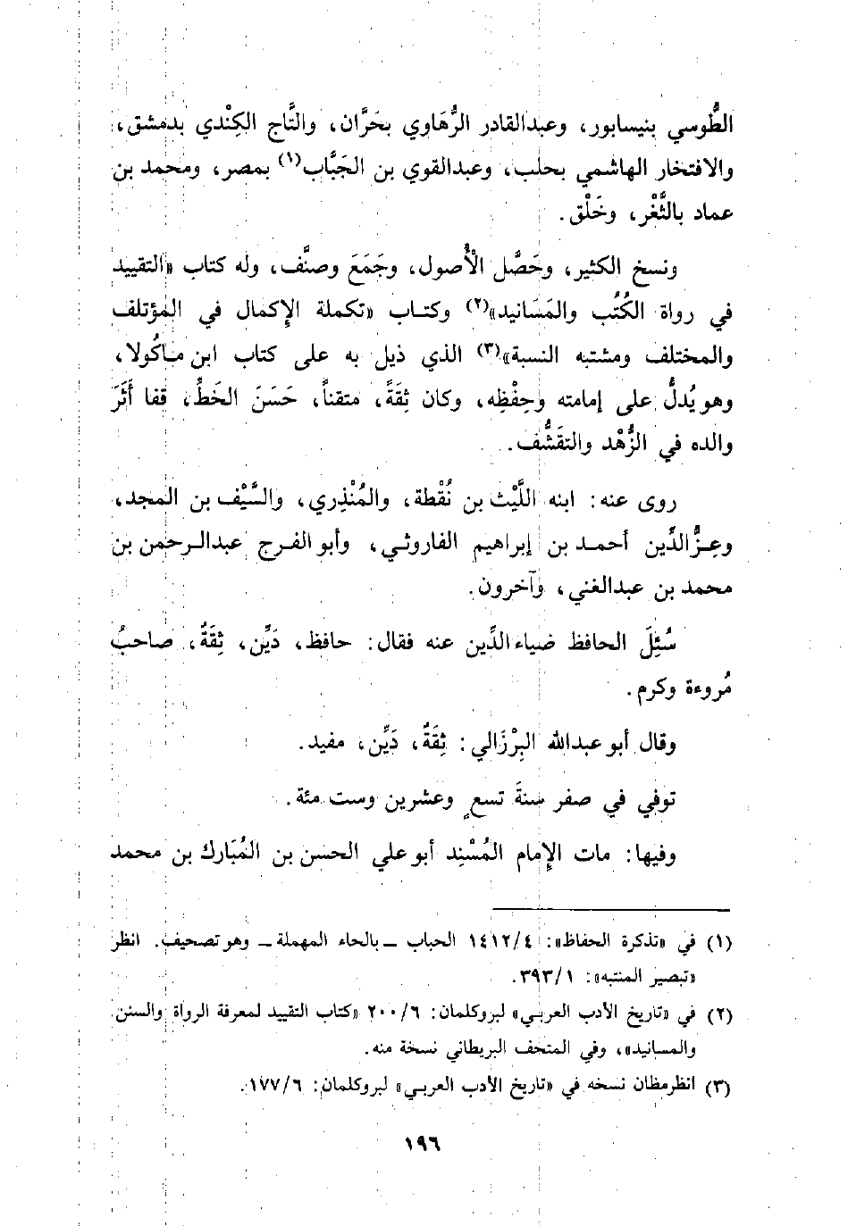 (¬2) في "تاريخ الأدب العربي" لبروكلمان: 6/ 200 "كتاب التقييد لمعرفة الرواة والسنن والمسانيد"، وفي المتحف البريطاني نسخة منه.