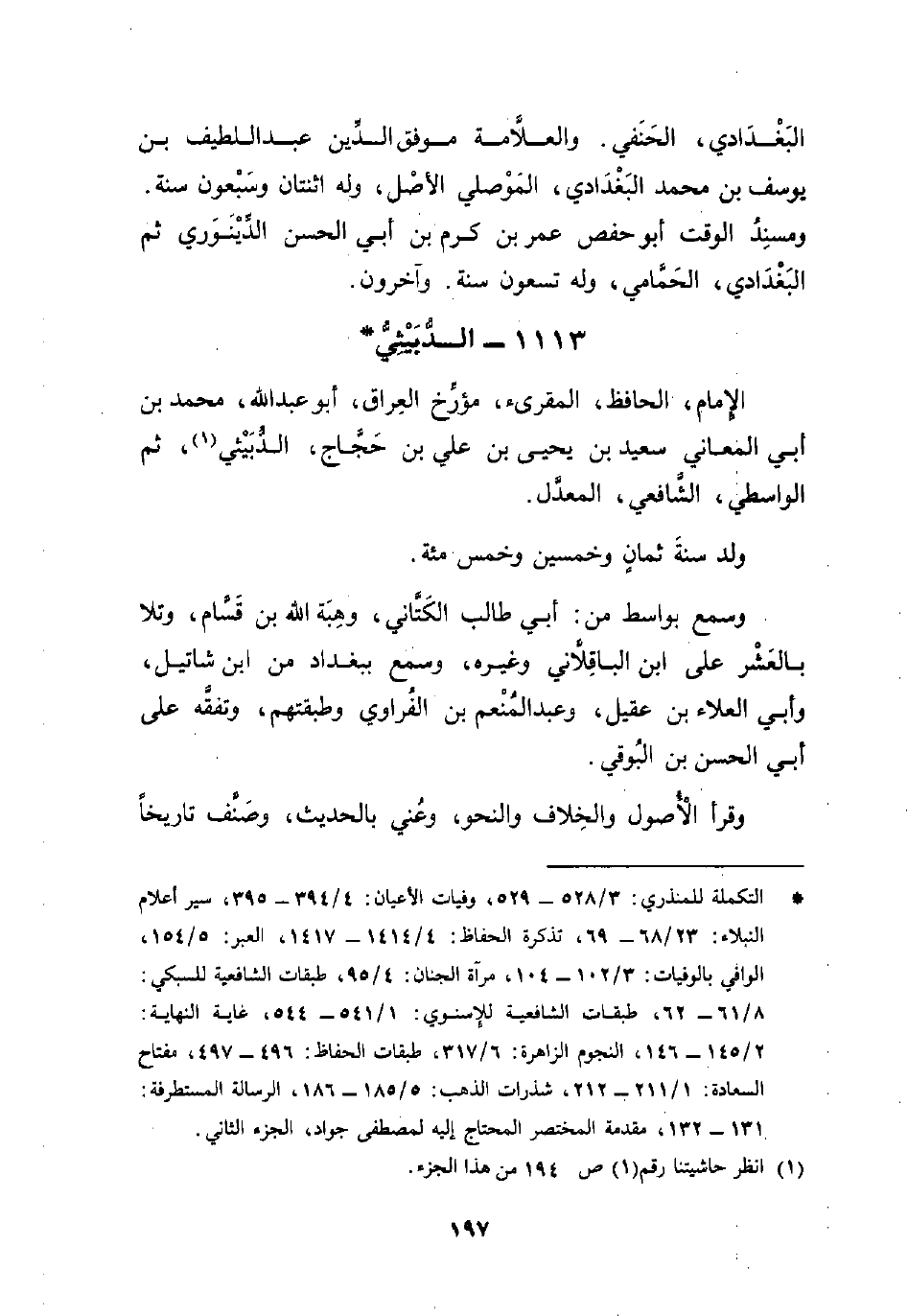البَغْدَادي، الحَنَفي. والعلَّامة موفق الدِّين عبد اللطيف بن يوسف بن محمد البَغْدَادي، المَوْصلي الأصْل، وله اثنتان وسَبْعون سنة. ومسنِدُ الوقت أبو حفص عمر بن كرم بن أبي الحسن الدِّينَوَري ثم البَغْدَادي، الحَمَّامي، وله تسعون سنة. وآخرون.