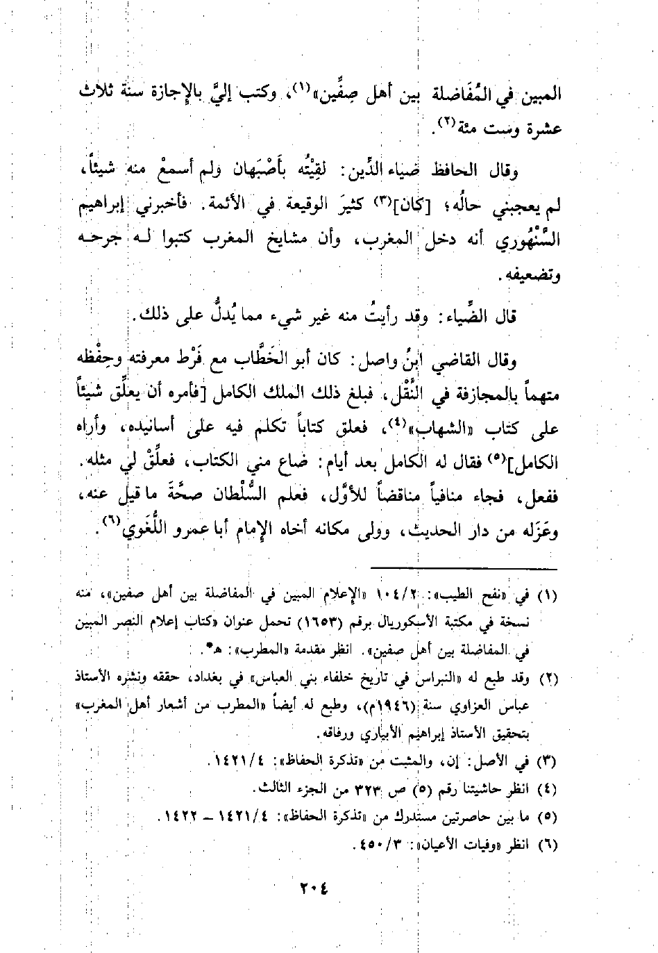 (¬1) في "نفح الطيب": 2/ 104 "الإعلام المبين في المفاضلة بين أهل صفين"، منه نسخة في مكتبة الأسكوريال برقم (1653) تحمل عنوان "كتاب إعلام النصر المبين في المفاضلة بين أهل صفين". انظر مقدمة "المطرب": هـ *.