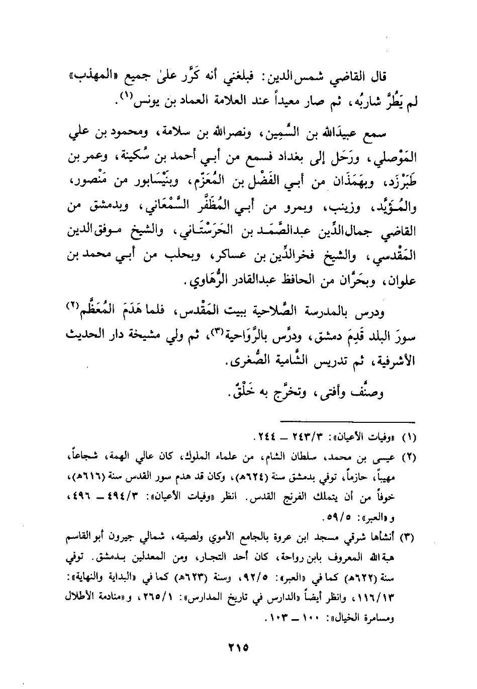 ودرس بالمدرسة الصَّلاحية ببيت المَقْدس، فلما هَدمَ المُعَظَّم (¬2) سورَ البلد قَدِمَ دمشق، ودرس بالروَاحية (¬3)، ثم ولي مشيخة دار الحديث الأشرفية، ثم تدريس الشامية الصغرى.
