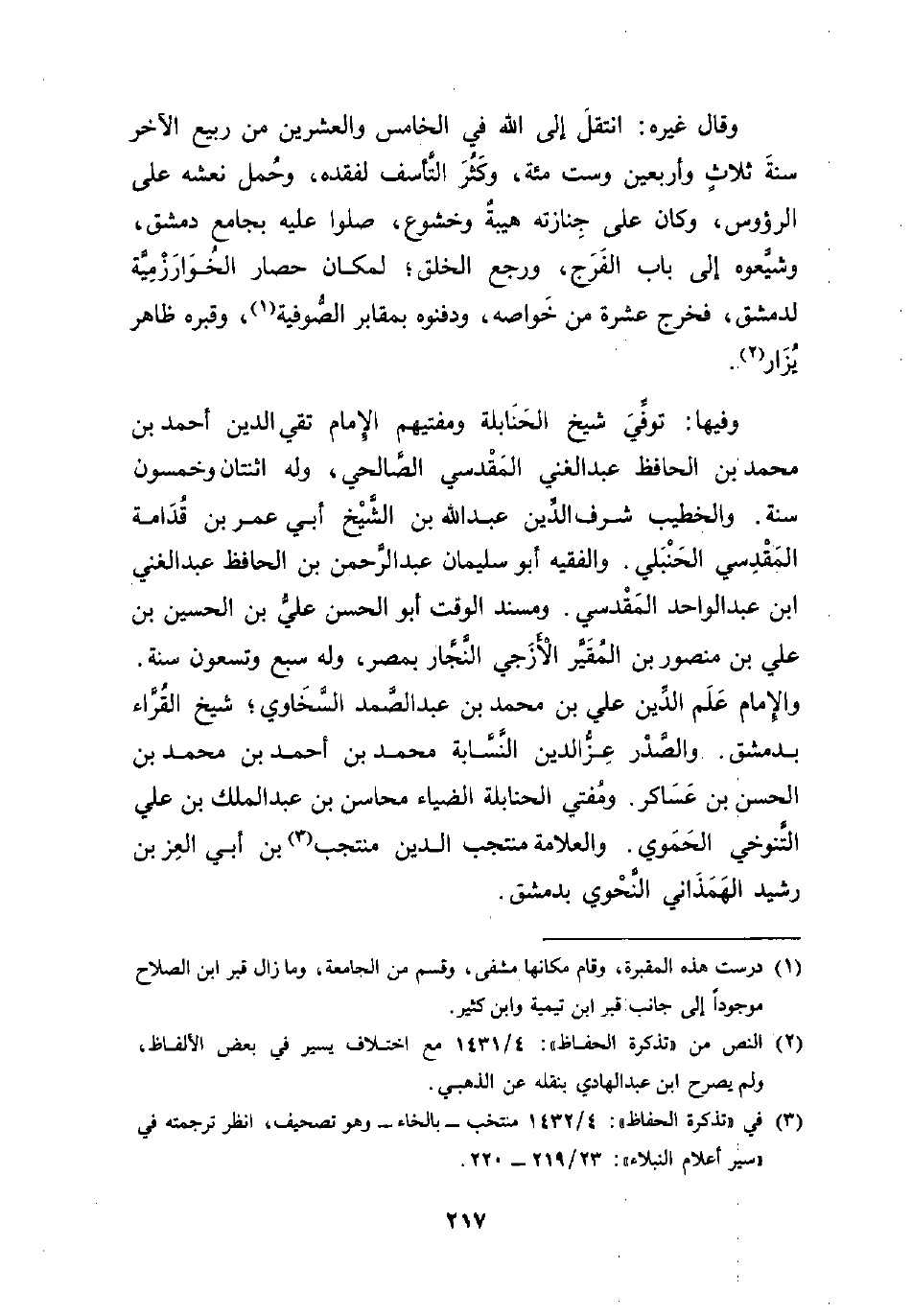 وفيها: توفِّيَ شيخ الحَنَابلة ومفتيهم الإمام تقي الدين أحمد بن محمد بن الحافظ عبد الغني المَقْدسي الصَّالحي، وله اثنتان وخمسون سنة. والخطيب شرف الدِّين عبد الله بن الشَّيخ أبي عمر بن قُدَامة المَقْدسي الحَنْبَلي. والفقيه أبو سليمان عبد الرحمن بن الحافظ عبد الغني بن عبد الواحد المَقْدسي. ومسند الوقت أبو الحسن علي بن الحسين بن علي بن منصور بن المُقَيَّر الأزجي النَّجَّار بمصر، وله سبع وتسعون سنة. والإمام عَلَم الدِّين علي بن محمد بن عبد الصَّمد السَّخَاوي؛ شيخ القُرَّاء بدمشق. والصدْر عِز الدين النسابة محمد بن أحمد بن محمد بن الحسن بن عَسَاكر. ومُفتي الحنابلة الضياء محاسن بن عبد الملك بن علي التنوخي الحَمَوي. والعلامة منتجب الدين منتجب (¬3) بن أبي العز بن رشيد الهَمَذَاني النحْوي بدمشق.