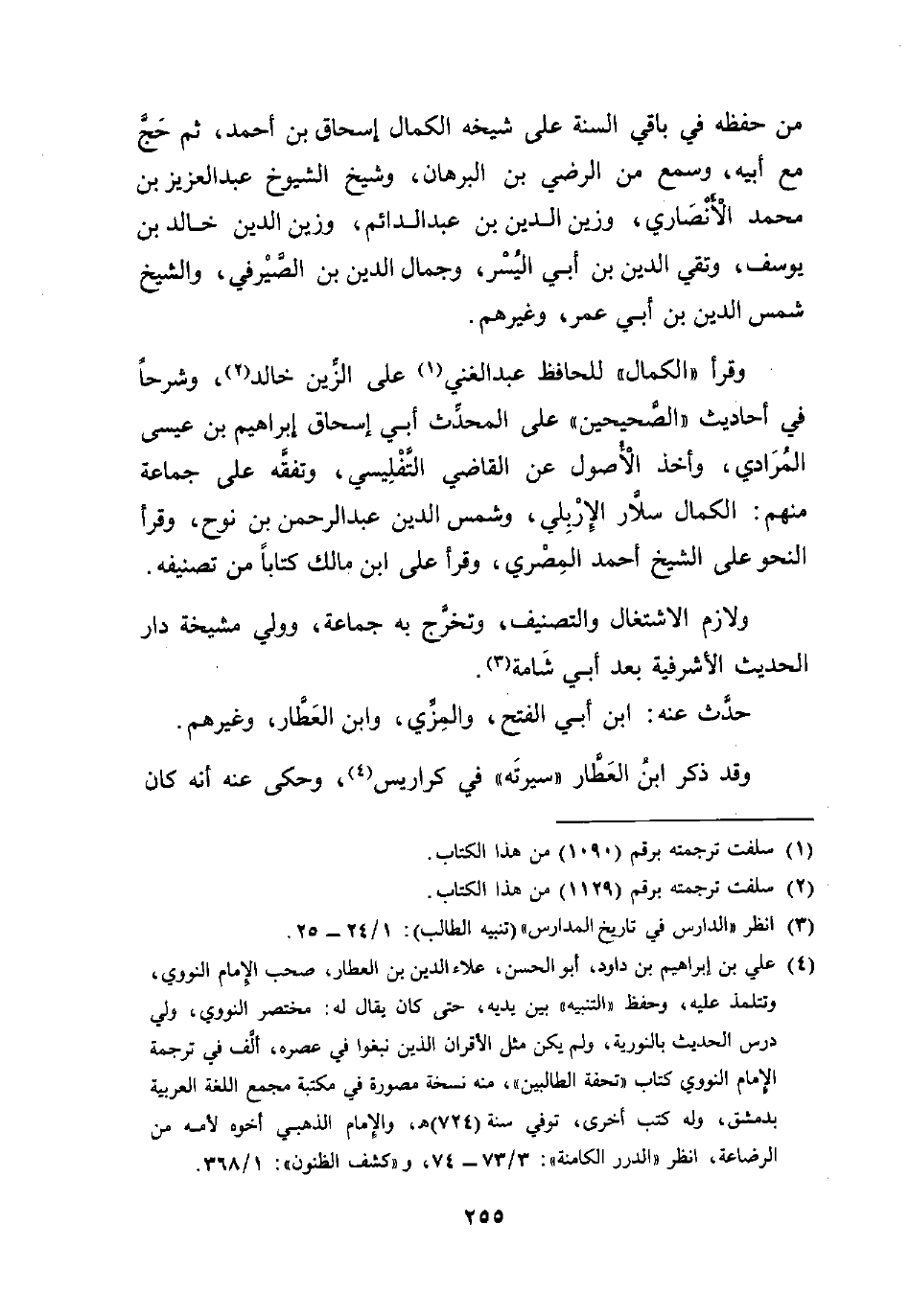 (¬4) علي بن إبراهيم بن داود، أبو الحسن، علاء الدين بن العطار، صحب الإمام النووي، وتتلمذ عليه، وحفظ "التنبيه" بين يديه، حتى كان يقال له: مختصر النووي، ولي درس الحديث بالنورية، ولم يكن مثل الأقران الذين نبغوا في عصره، ألف في ترجمة الإمام النووي كتاب "تحفة الطالبين"، منه نسخة مصورة في مكتبة مجمع اللغة العربية بدمشق، وله كتب أخرى، توفي سنة (724) هـ، والإمام الذهبي أخوه لأمه من الرضاعة، انظر "الدرر الكامنة": 3/ 73 - 74، و"كشف الظنون": 1/ 368.