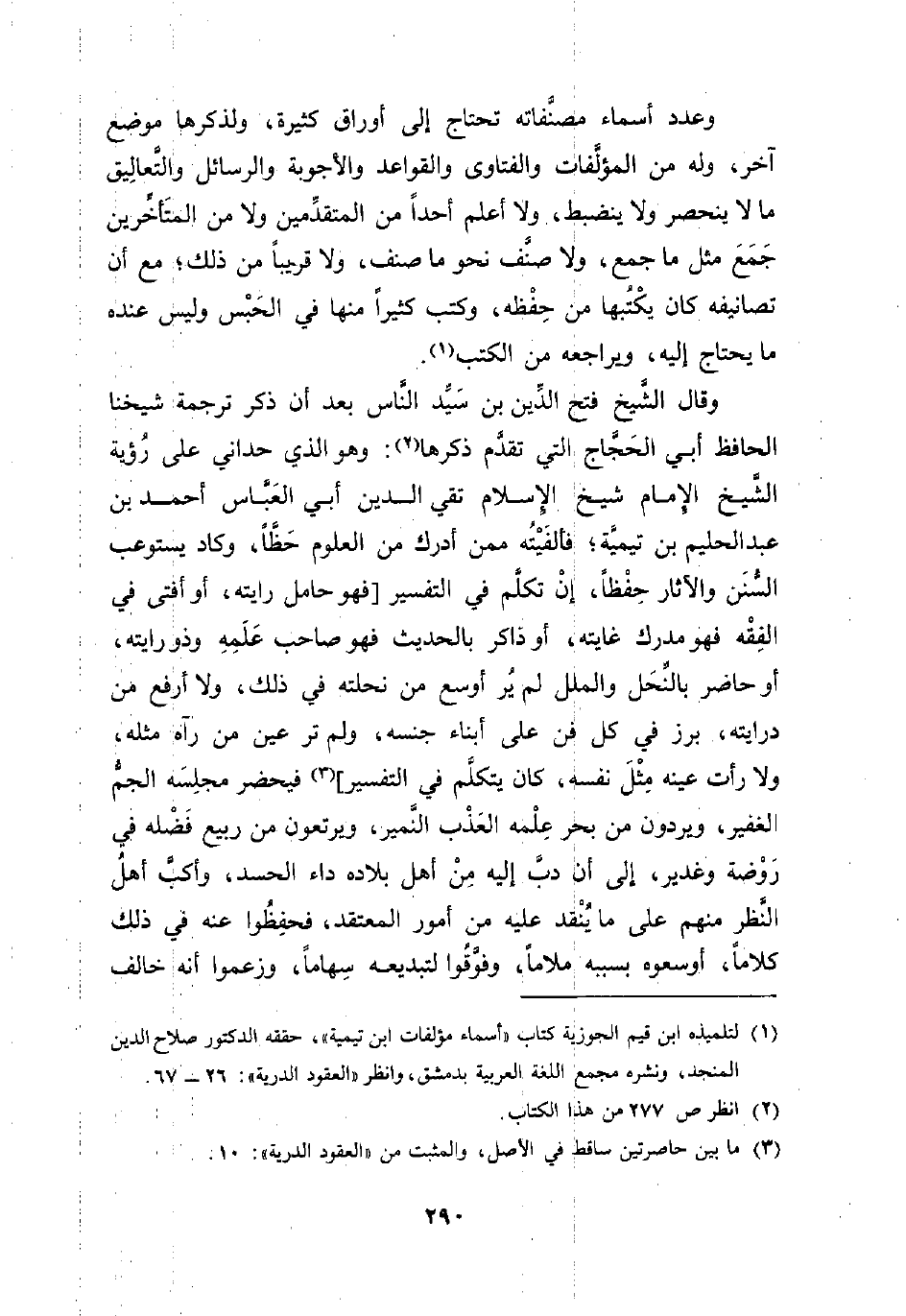 (¬1) لتلميذه ابن قيم الجوزية كتاب "أسماء مؤلفات ابن تيمية"، حققه الدكتور صلاح الدين المنجد، ونشره مجمع اللغة العربية بدمشق، وانظر "العقود الدرية": 26 - 67.
