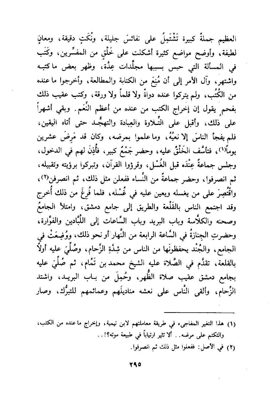 (¬1) هذا التغير المفاجئ في طريقة معاملتهم لابن تيمية، وإخراج ما عنده من الكتب، والتكتم على مرضه .. ألا تثير ارتيابًا في طبيعة موته؟ ! .