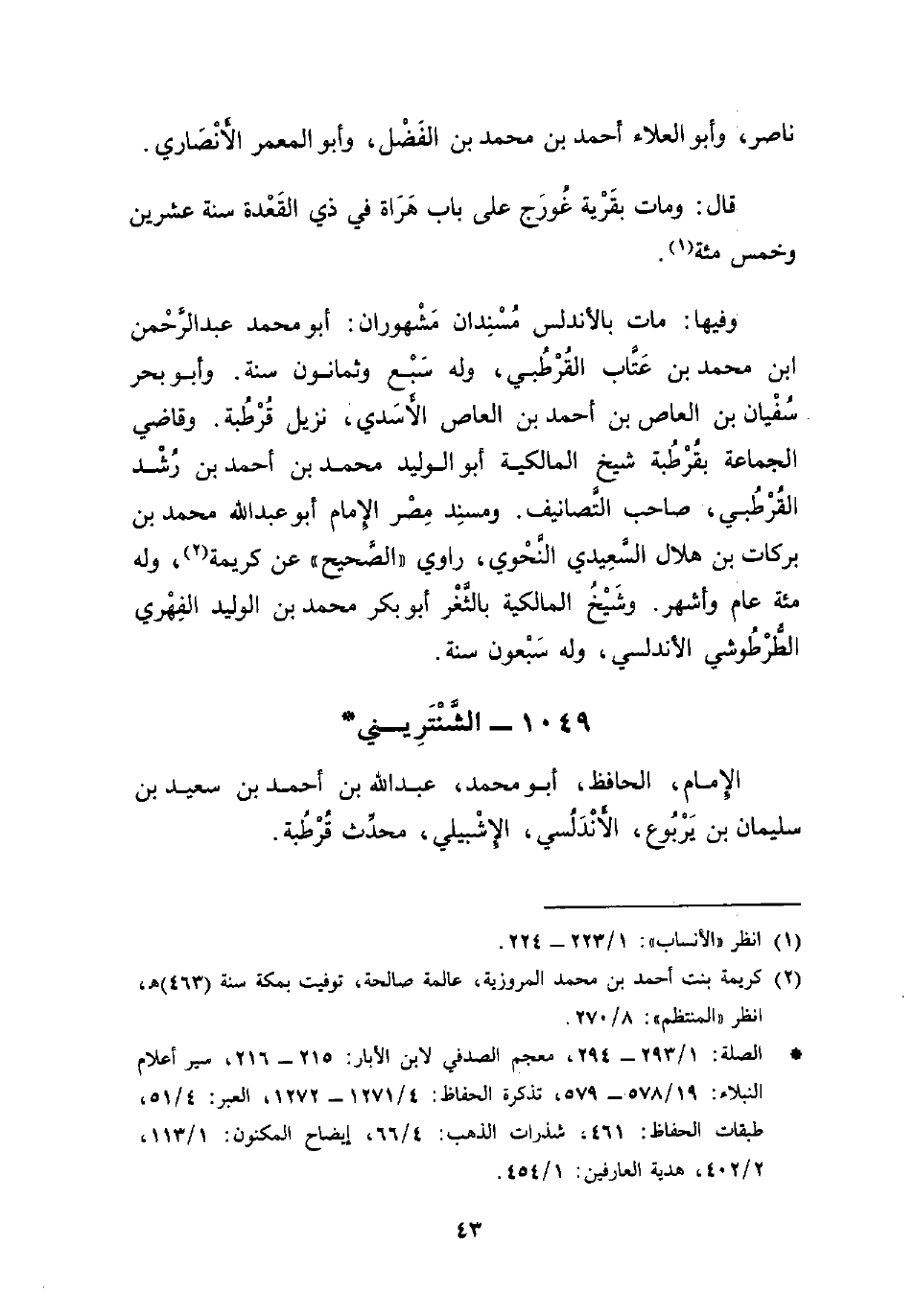 * الصلة: 1/ 293 - 294، معجم الصدفي لابن الأبار: 215 - 216، سير أعلام النبلاء: 19/ 578 - 579، تذكرة الحفاظ: 4/ 1271 - 1272، العبر: 4/ 51، طبقات الحفاظ: 461: شذرات الذهب: 4/ 66، إيضاح المكنون: 1/ 113، 2/ 402، هدية العارفين: 1/ 454.