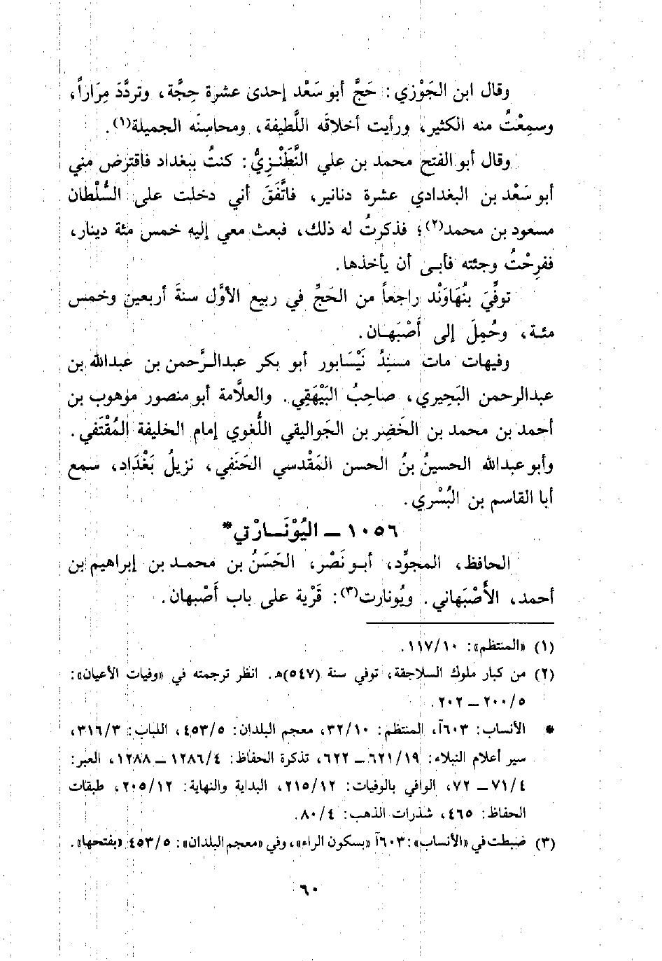 الحافظ، المجوِّد، أبو نَصْر، الحَسَنُ بن محمد بن إبراهيم بن أحمد، الأَصْبَهاني. ويُونارت (¬3): قَرْية على باب أَصْبهان.