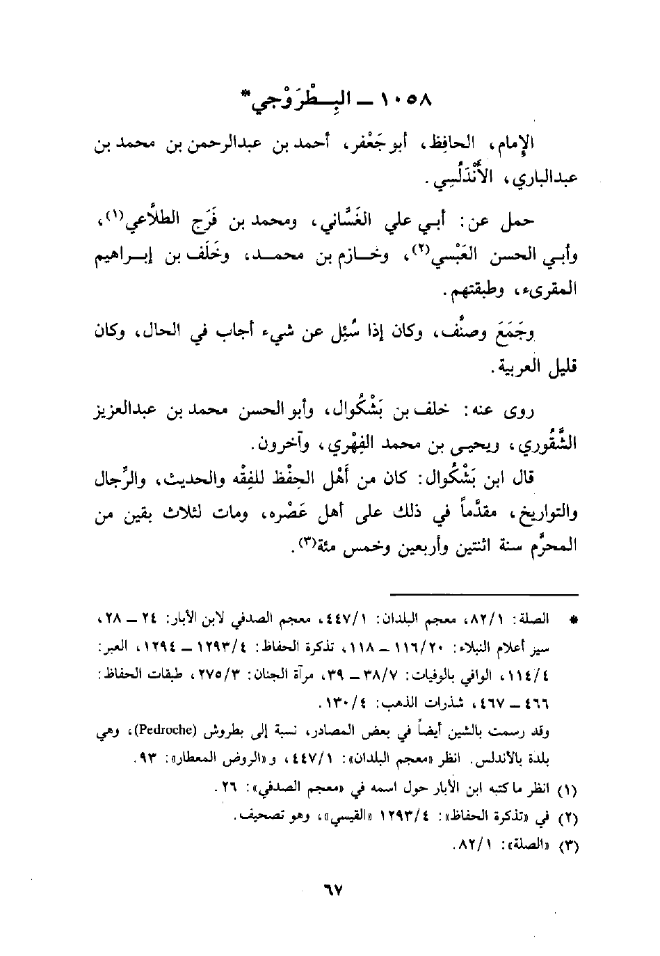 وقد رسمت بالشين أيضًا في بعض المصادر، نسبة إلى بطروش (Pedroche)، وهي بلدة بالأندلس. انظر "معجم البلدان": 1/ 447، و"الروض المعطار": 93.