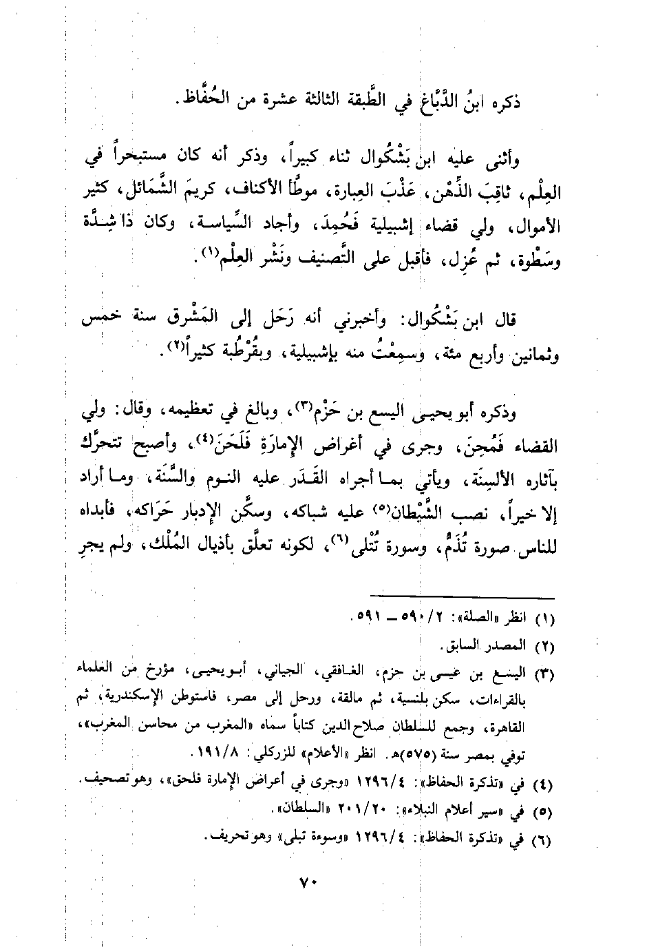 (¬3) اليسع بن عيسى بن حزم، الغافقي، الجياني، أبو يحيى، مؤرخ من العلماء بالقراءات، سكن بلنسية، ثم مالقة، ورحل إلى مصر، فاستوطن الإسكندرية، ثم القاهرة، وجمع للسلطان صلاح الدين كتابًا سماه "المغرب من محاسن المغرب"، توفِّي بمصر سنة (575) هـ. انظر "الأعلام" للزركلي: 8/ 191.