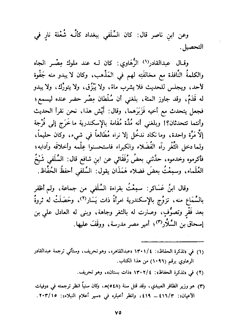(¬1) في "تذكرة الحفاظ": 4/ 1301 "عبد القاهر"، وهو تحريف، وستأتي ترجمة عبد القادر الرهاوي برقم (1096) من هذا الكتاب.