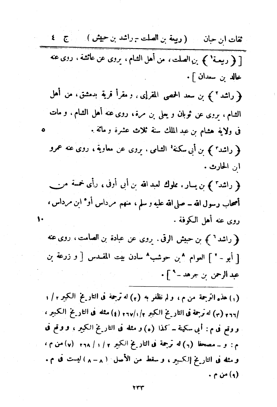 2666 - رَاشد بْن حُبَيْش الرقى يروي عَن عبَادَة بْن الصَّامِت روى عَنهُ أَبُو الْعَوام بْن حَوْشَب سَادِن بَيت الْمُقَدّس وزرعة بْن عَبْد الرَّحْمَن بْن جرهد