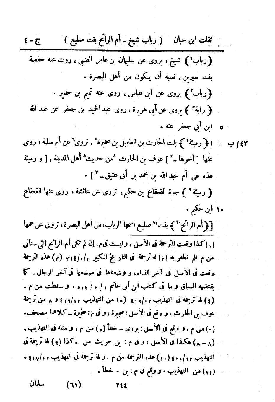 2729 - أم الرَّائِح بنت صليعٍ اسْمهَا الربَاب من أهل الْبَصْرَة تروى عَن عَمها