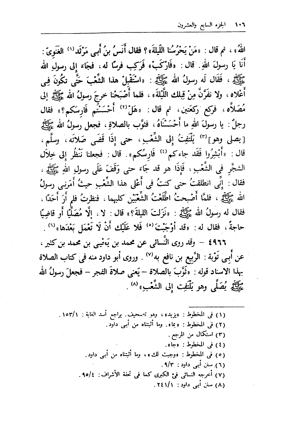 4966 - وقد روى النسائى عن محمد بن يحيى بن محمد بن كثير، عن أبى توبة: الربيع بن نافع به (¬1) وروى أبو داود منه في كتاب الصلاة بهذا الإسناد قوله: «ثوَّب بالصلاة - يعنى صلاة الفجر - فجعل رسول الله - صلى الله عليه وسلم - يصلى وهو يلتفت إلى الشعب» (¬2) .