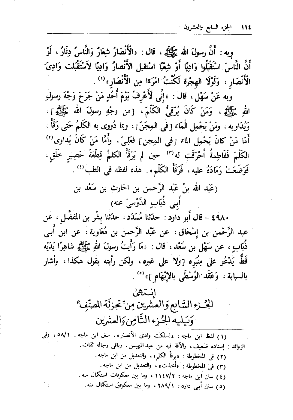 4980 - قال أبو داود: حدثنا مسدد، حدثنا بشر بن المفضل، عن عبد الرحمن بن إسحاق، عن عبد الرحمن بن معاوية، عن ابن أبى ذباب، عن سهل بن سعد، قال: «ما رأيت رسول الله - صلى الله عليه وسلم - شاهرًا يديه قط يدعو على منبره [ولا على غيره، ولكن رأيته يقول هكذا، وأشار بالسبابة، وعقد الوسطى بالإبهام] » (¬1) .