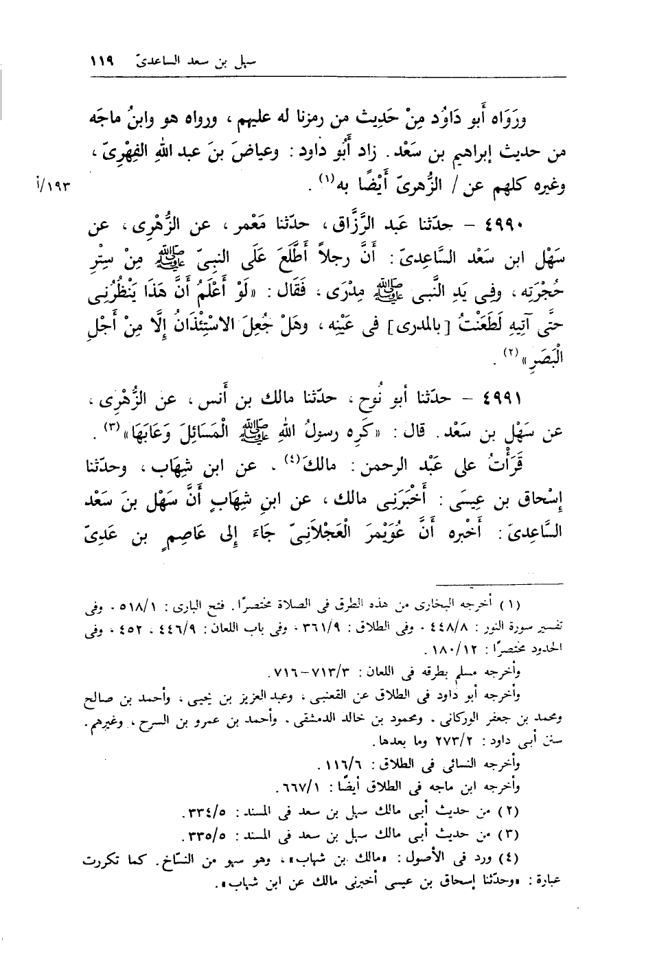 (¬1) أخرجه البخارى من هذه الطرق في الصلاة مختصرًا. فتح البارى: 1/ 518. وفى تفسير سورة النور: 8/ 448. وفى الطلاق: 9/ 361؛ وفى باب اللعان: 9/ 446، 452، وفى الحدود مختصرًا: 12/ 180.